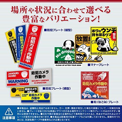 【注意事項】 ・本製品は、盗難防止用品ではありません。万一、犯罪・事故が発生した場合の損害について、一切責任を負いません。 ・UVカット、防水加工ではありますが、日光や雨が直接当たる場所での長期間設置により色あせやはがれ、プレートの変形が発生する場合があります。 ・本製品は設置用の粘着テープ等は付属しておりません。設置には別途粘着テープや接着剤等が必要となります。 ・製品仕様やデザインは、改良のため予告なく変更となる場合があります。予めご了承ください。