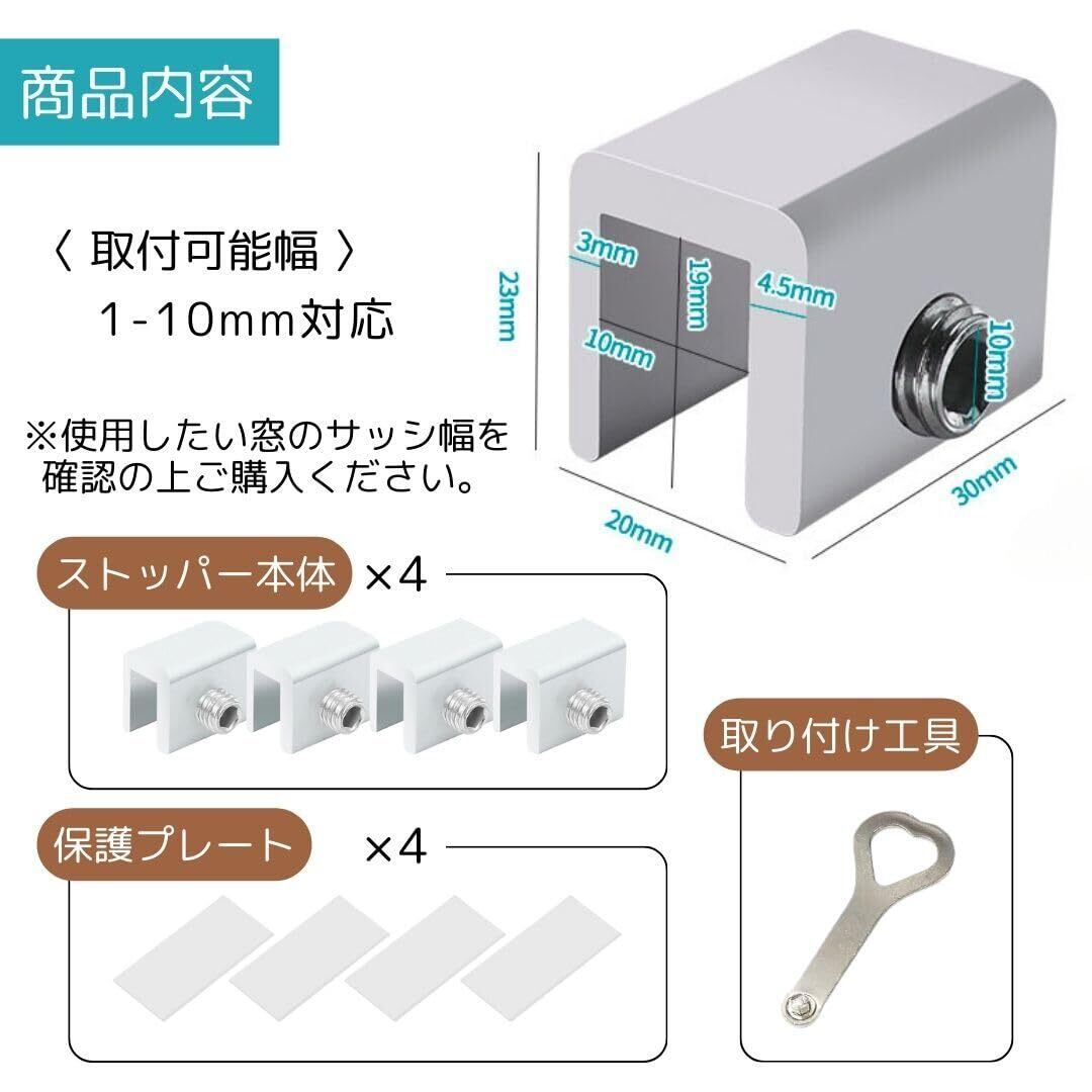 【全家族を守る、強力窓ロック】最適な開き幅で窓を固定し、お子様やペットの不慮の転落を防ぎます。泥棒の侵入もしっかり防ぐ、強力なロック機能を備えたサッシストッパー。設置は付属の専用工具で簡単、すぐにお使いいただけます。便利な4個セットで、家中どこでも安全を守ります。高齢者の誤操作も防ぎ、毎日の安心をサポートします。