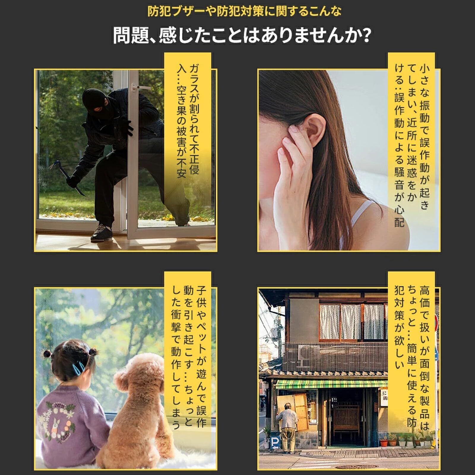 【振動センサー&125dBの大音量】空き巣が窓を揺らしたり、ガタガタさせたりすると、アラームが125dBの大音量を発します。泥棒が侵入しようとしていることを家主に知らせます。万が一侵入されても、大音量で警報が鳴るので安心です。