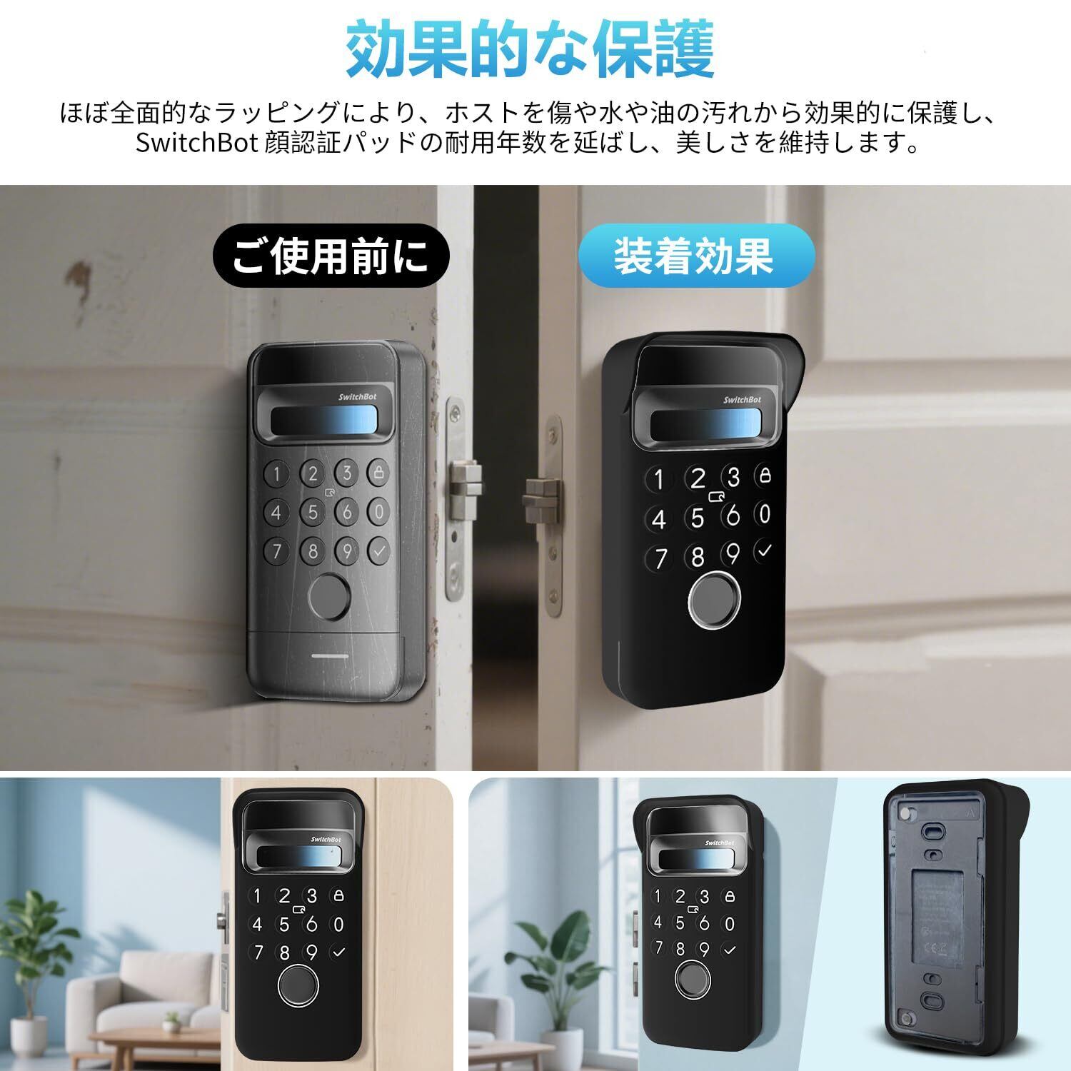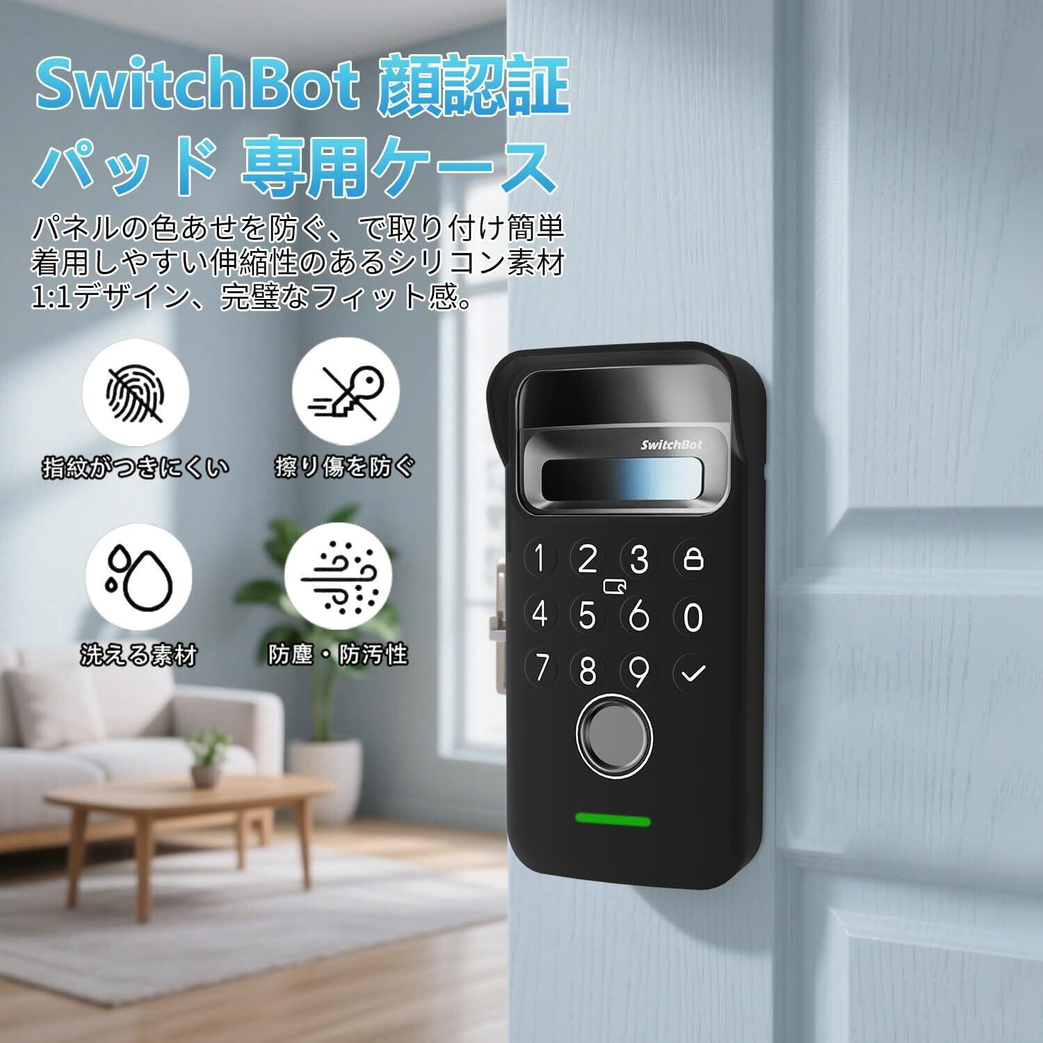 【数量限定】保護ケース for SwitchBot 顔認証パッド 指紋認証 暗証番号 スマートロック カバー 夜間視認可能 全面保護 柔らかい 防水防塵 無臭で 耐久性 キズ防止 SwitchBot スイッチボット オートロック ドアロック カギ 用ケース (ブラック)