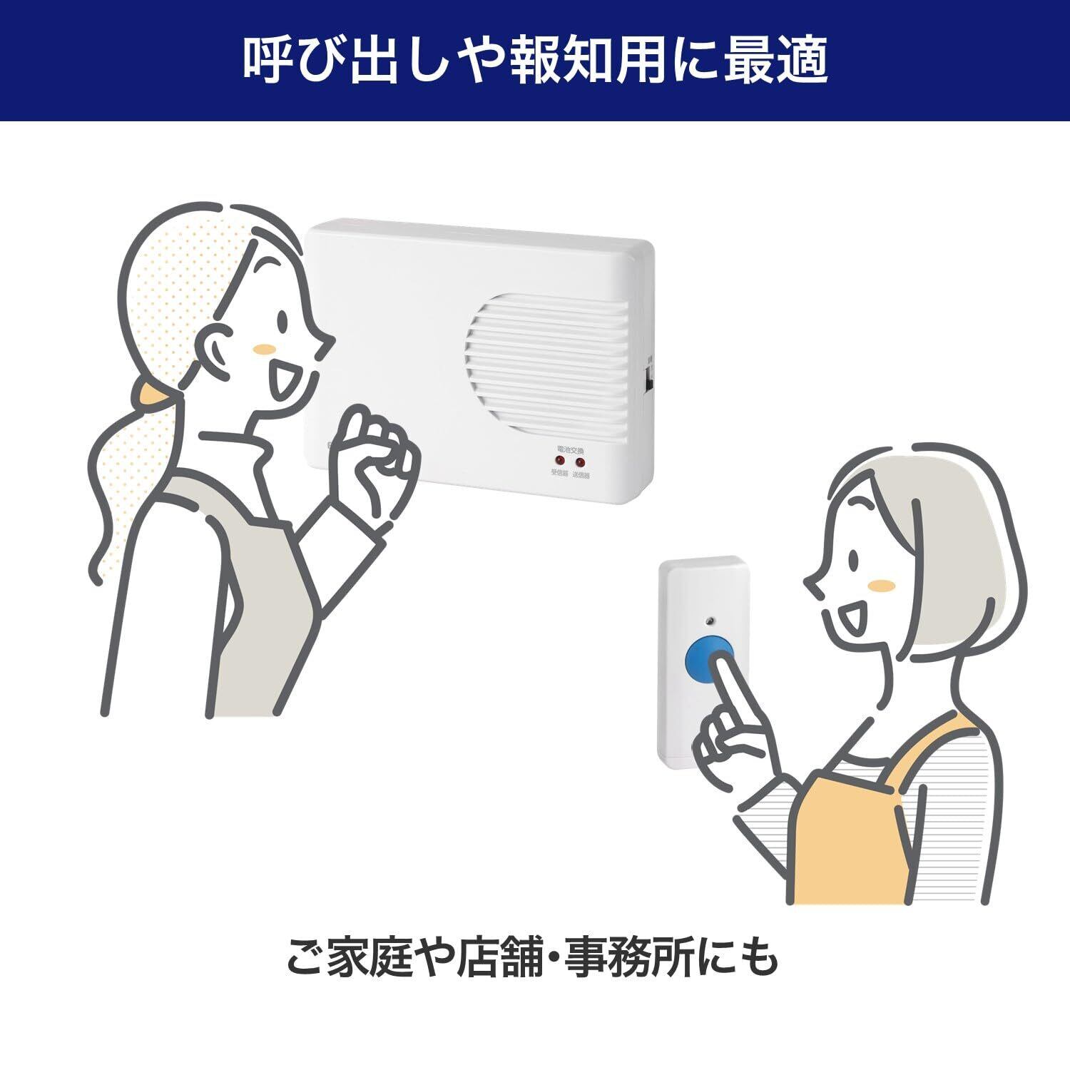 ●配線が不要なワイヤレスタイプ(無線式)なので設置が簡単! ●一般家庭や店舗・事務所における呼び出しや報知用に最適です。 ●IDコード(識別符号)が約6万5千通りなので混信の心配がありません。 ●電池の交換時期をランプの点滅でお知らせします。 ●お好みで10種類の報知音が設定できます。 ●軒下などの屋外にも設置できる防雨タイプ押ボタン。 ※大量の水(ゲリラ豪雨や台風など)が直接かかる場所への設置は避けてください。