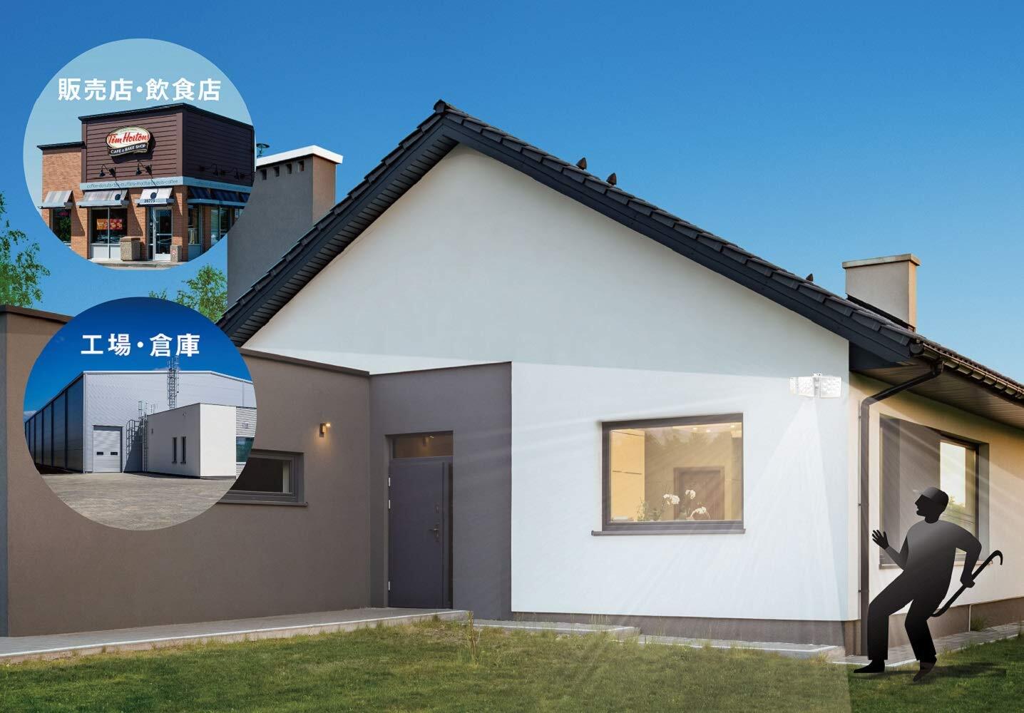 ■【撃退モード】近づくとフラッシュとブザーで威嚇。【投光器モード】つきっぱなしON/OFF。