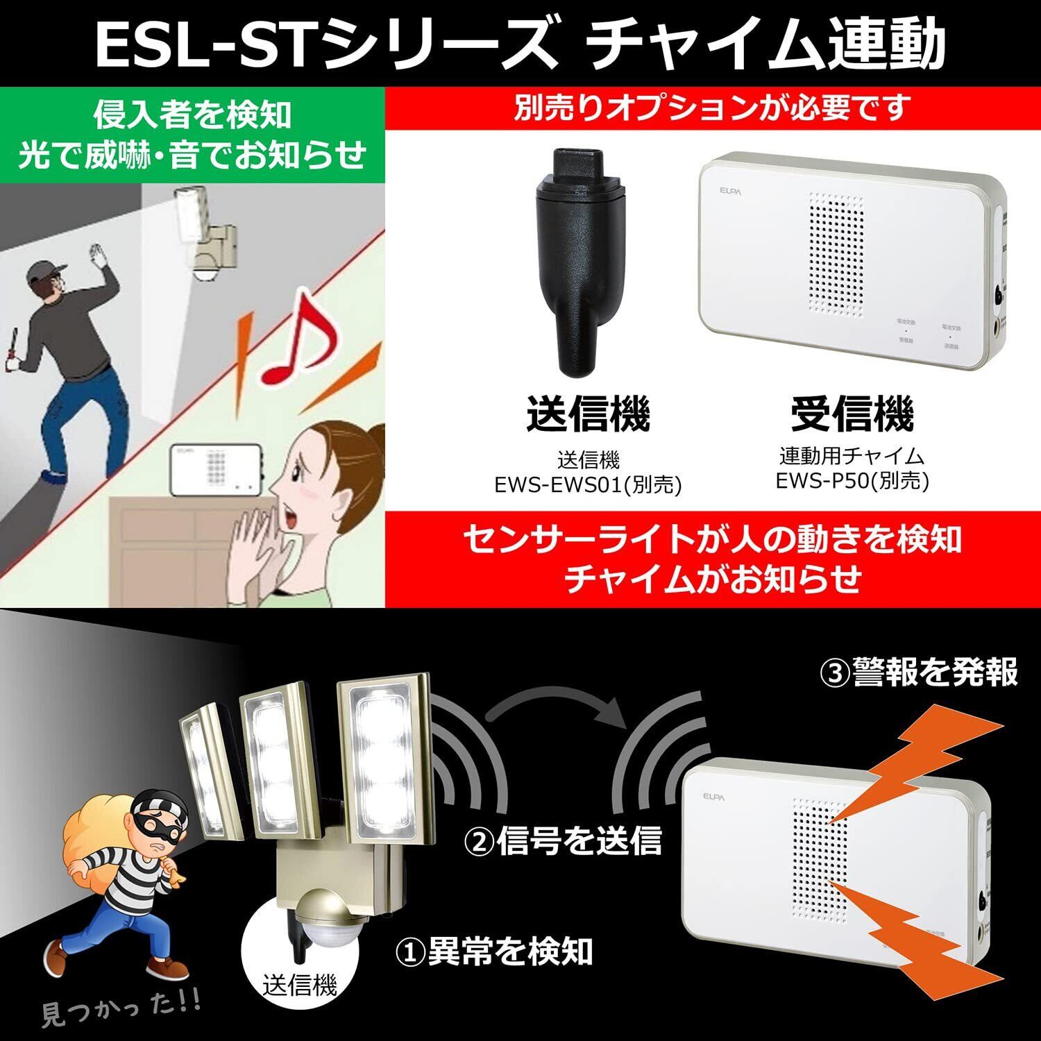 エルパ(ELPA) コンセント式 センサーライト 3灯 (白色LED/防水仕様) 屋外 センサーライト 足元 (ESL-ST1203AC)