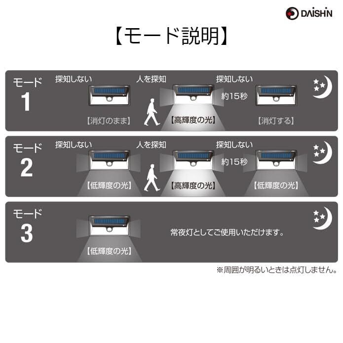 DAISHIN ソーラーライト DLS-WL005 センサーライト 屋外 ソーラー 人感 led 防雨 マグネット led 人感センサー ライト ルーメン 外 防犯ライト ソーラーライト ガレージ 庭 玄関 灯 広範囲 防犯ライト 駐車場 明るい 防水企画 防雨型