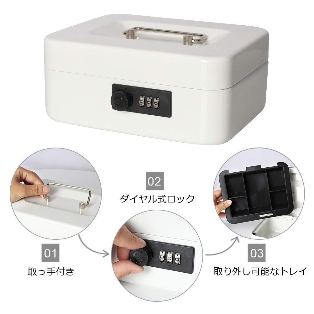Jssmst(ジェスマット) 手提金庫 ダイヤル式 金属製 20x16x9cm B6サイズ CB0702M (白)