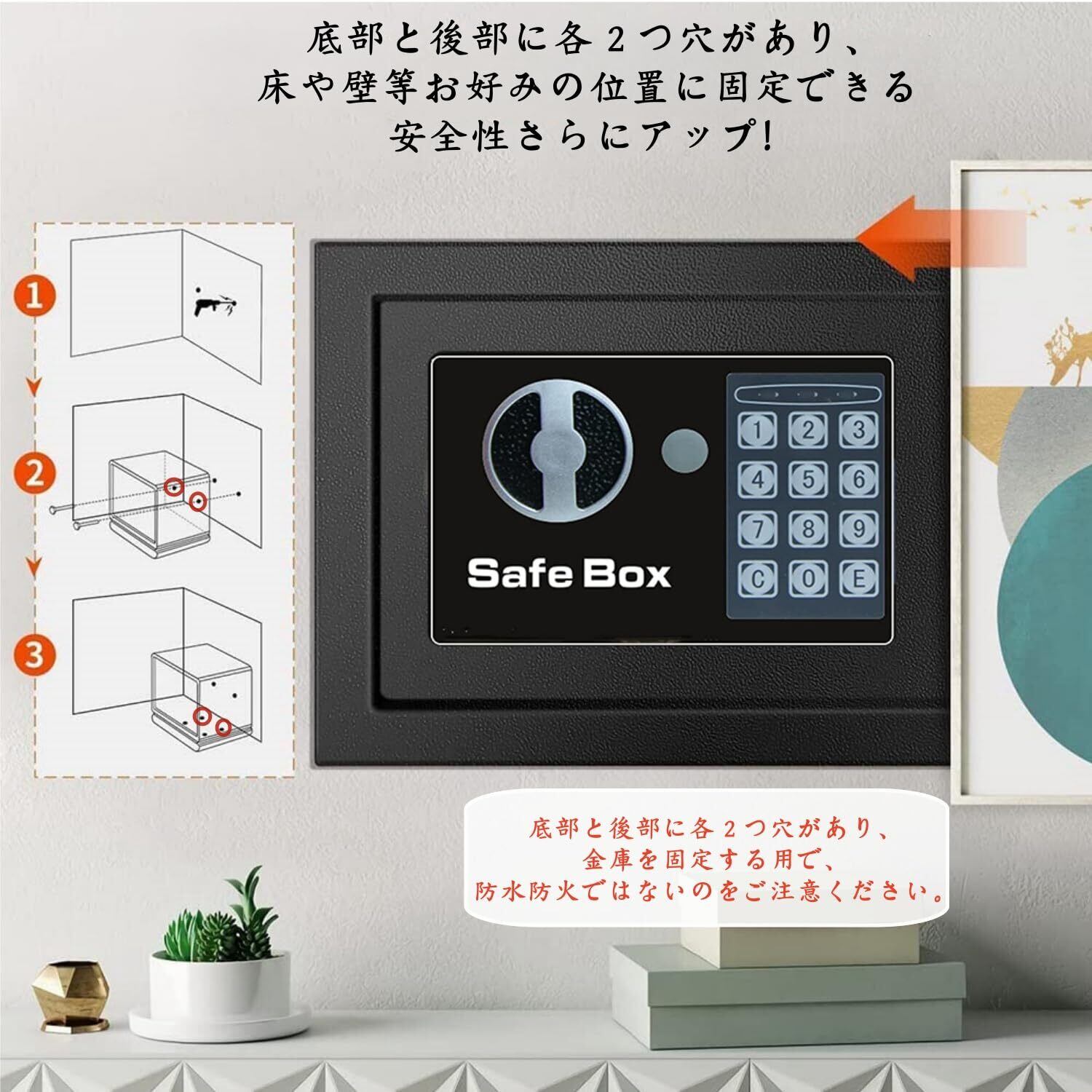 金庫 家庭用 小型 電子金庫 業務用 テンキー式 盗難防止 デジタルキーボード 緊急キーでロック解除 (6L)