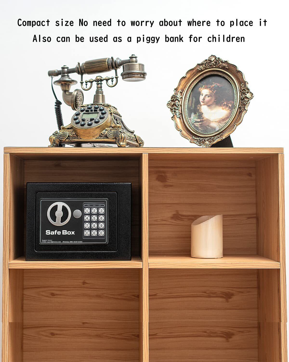 【人気商品】金庫 家庭用 小型 電子金庫 業務用 テンキー式 盗難防止 デジタルキーボード 緊急キーでロック解除 (6L)