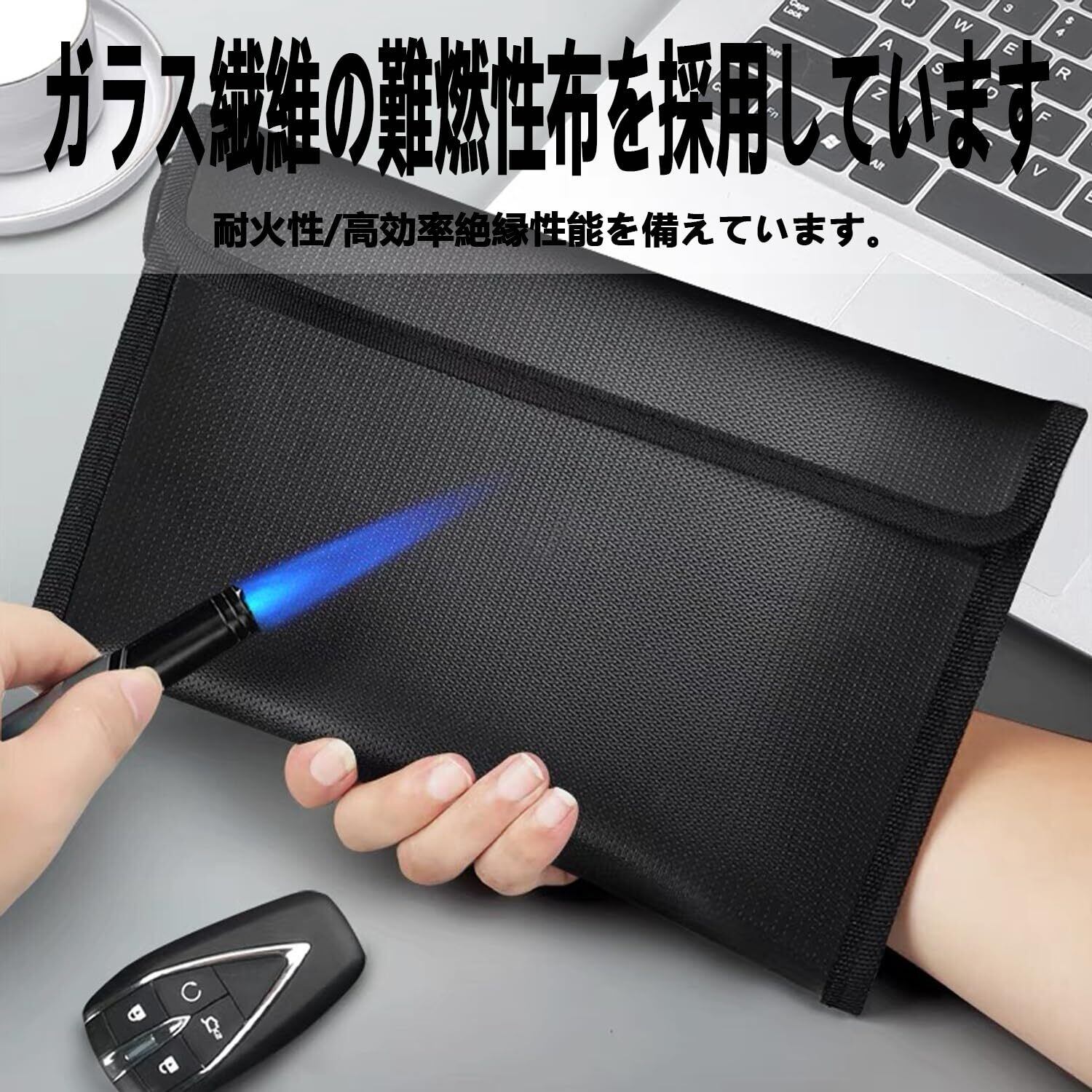 耐火バッグ 耐火ケース 20cm×12cm ブラック 金庫耐火バッグ 防火袋 耐火金庫 防火金庫 ファスナー式 防爆 防水 防災 防火バック 現金収納 家庭用 家庭用安心保管袋