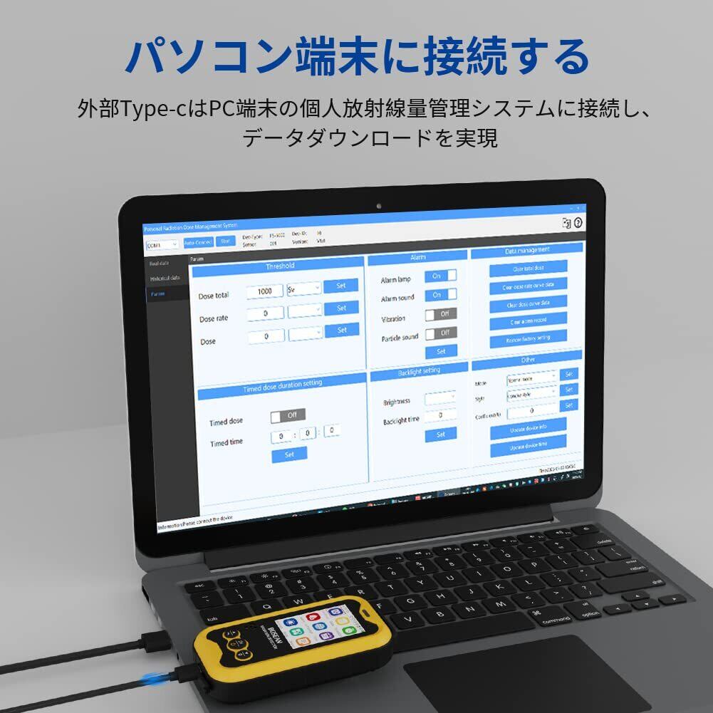 4種類のアラーム方式: 光・音・振動・画面表示の4つのアラームでお知らせします。設定画面で現在の線量警報値と累積線量警報値を設定可能です。画面がスリープモードでも動作中でも、検出された放射線量がしきい値を超えると自動で警報します。