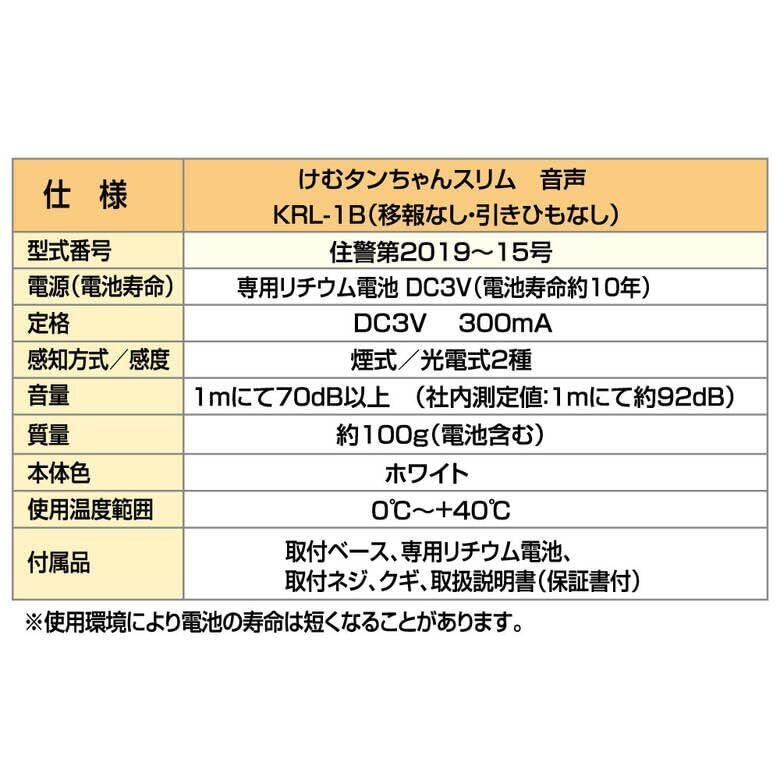けむタンちゃん 火災警報器 煙式 音声警報 KRH-1B 白