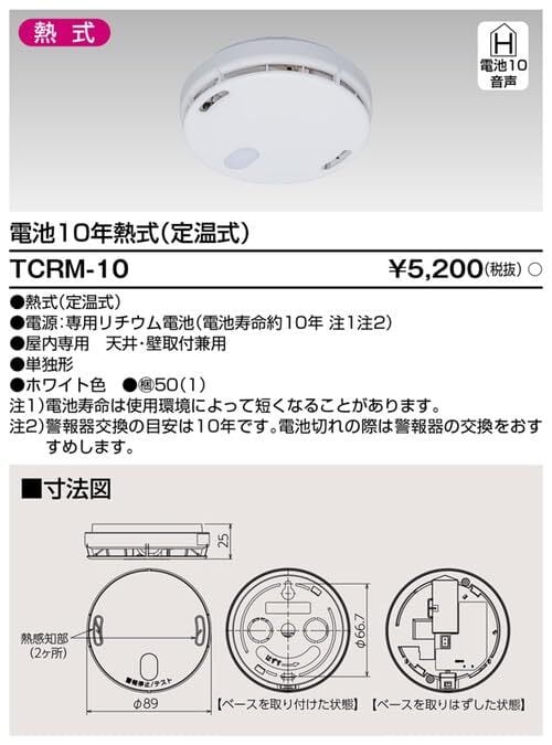 東芝 なるる住宅用火災警報器 電池10年式 (音声タイプ) 熱式 TCRM-10
