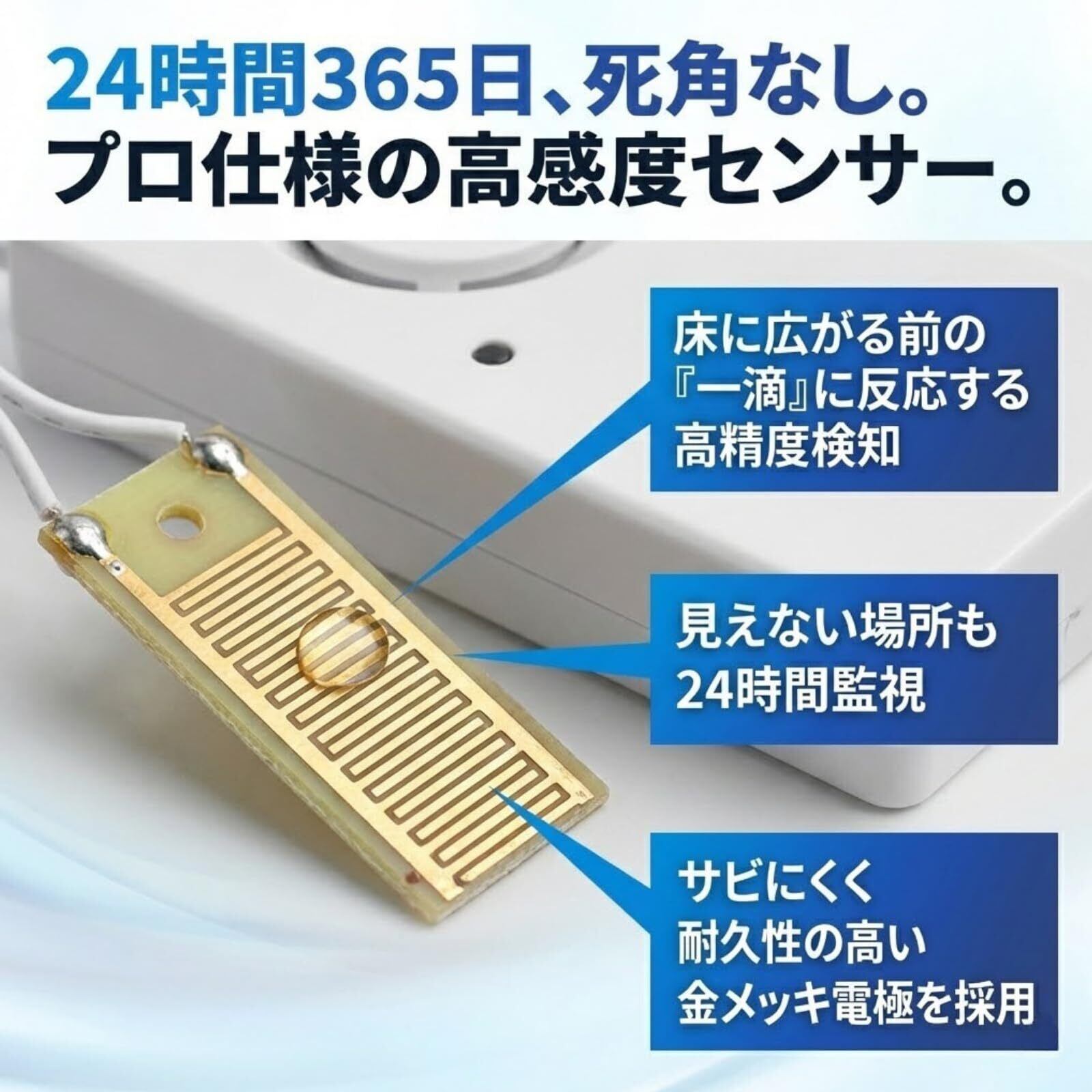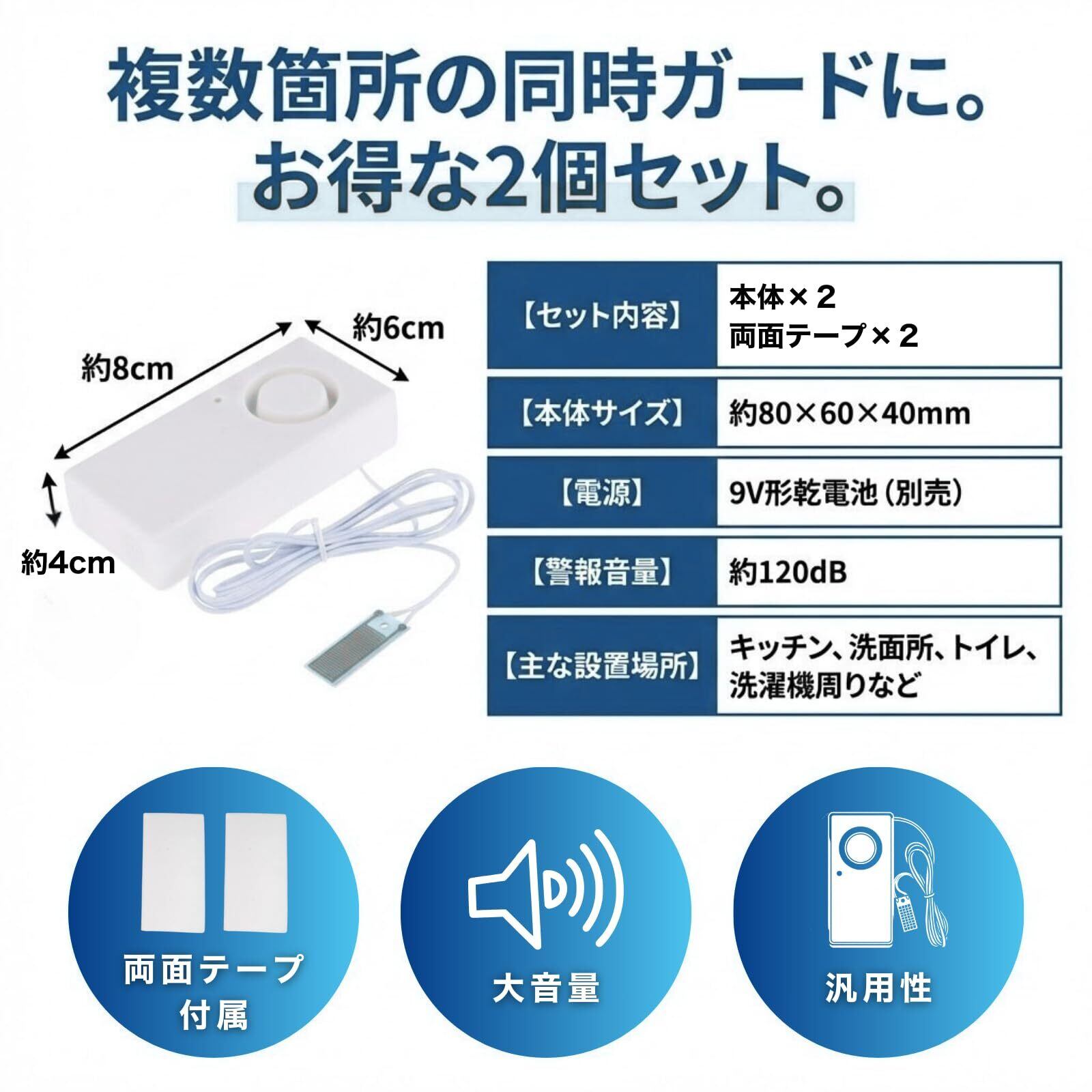 【120dbの大音量で安心】約120dBの警報音が鳴り響き、家中どこにいても水漏れにすぐに気づけます。高感度で少量の水漏れも逃しません。