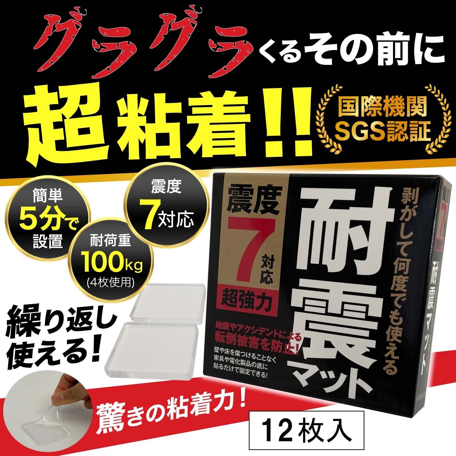 【特価商品】FORESIA 耐震マット 4cm×4cm 厚さ5mm 12枚入り 震度7対応 地震対策 防災士推薦 転倒防止 耐震ジェル 滑り止め 超強力粘着 クリア 透明 粘着マット