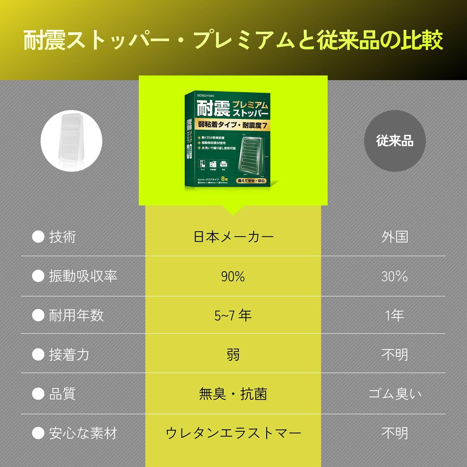 【特価セール】SOSOYOKI 耐震ストッパー 弱粘着タイプ 耐震マット 耐震度7対応 地震 転倒防止 耐荷重200kg 振動吸収 粘着固定 繰り返し使用可能 強力滑り止めパッド 簡単取り付け (クリア8枚)