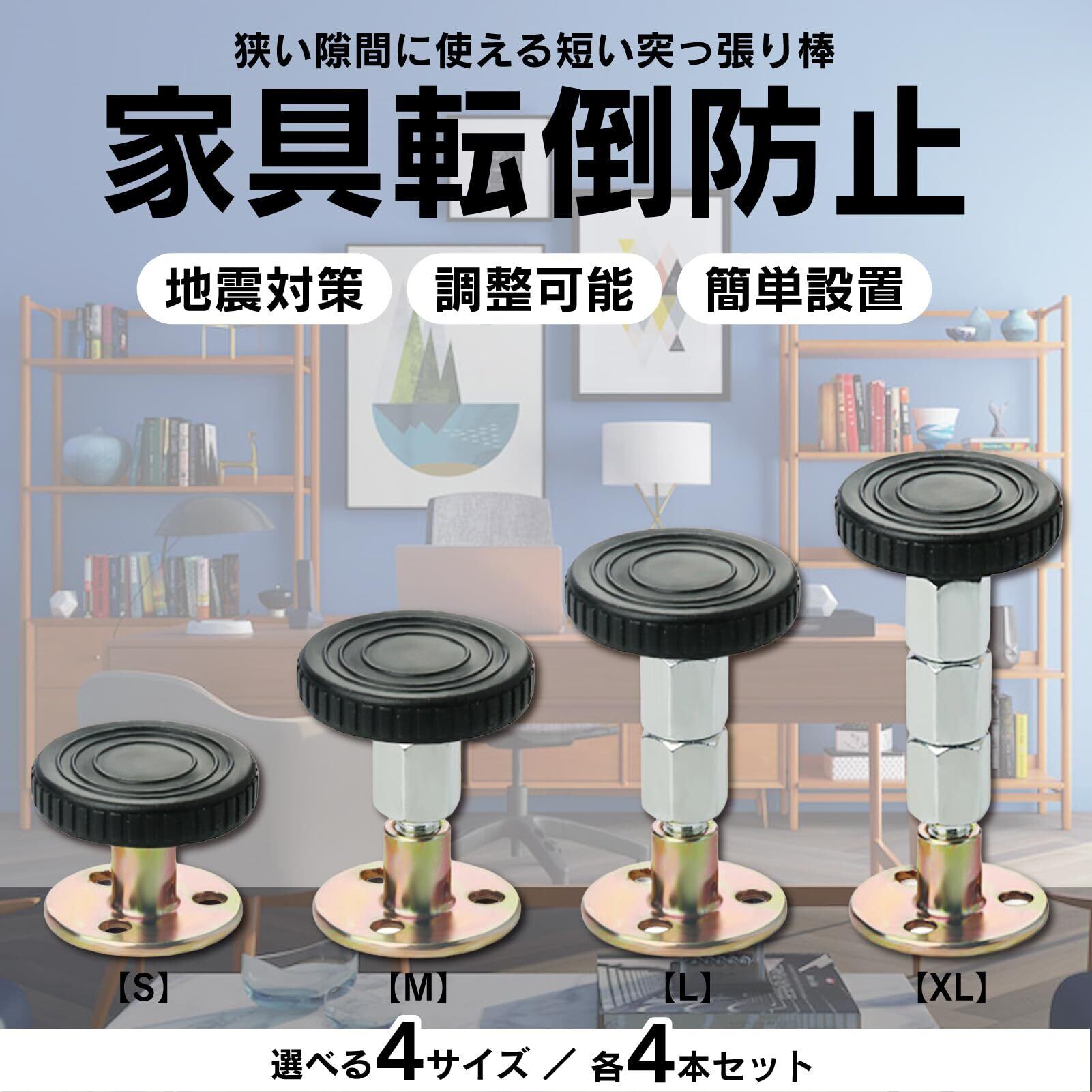家具転倒防止 つっぱり棒 4本 耐震 強力 短い 狭い隙間用 a900 (S)