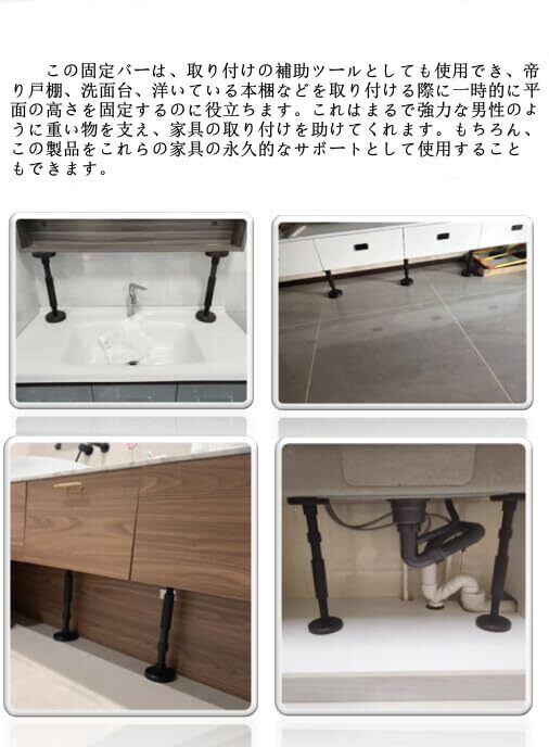 [適用シーン] この製品は非常に頑丈な素材で作られており、200kgの重量に耐えることができます。この固定棒は家具の固定に使えるだけでなく、特定の家具の設置支えとしても使用できます。日常生活で支えが必要な家具がある場合、この製品を迷わず使用できます。
