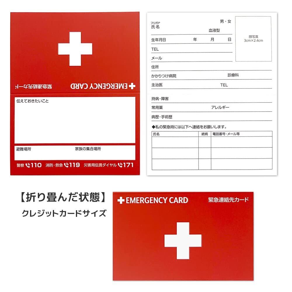 【数量限定】緊急連絡先カード 二つ折りタイプ 救急 防災 医療情報カード 10枚セット OPP袋10枚付 EC002