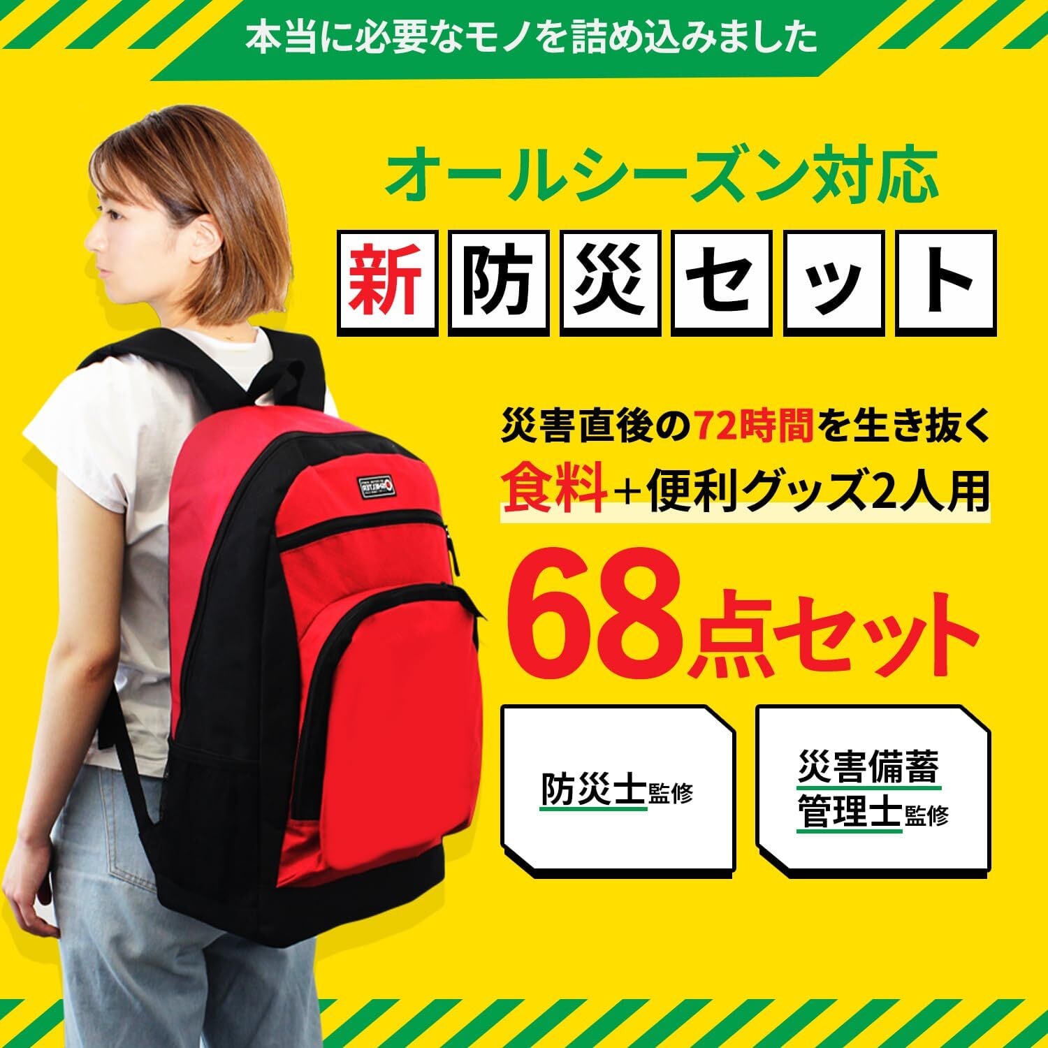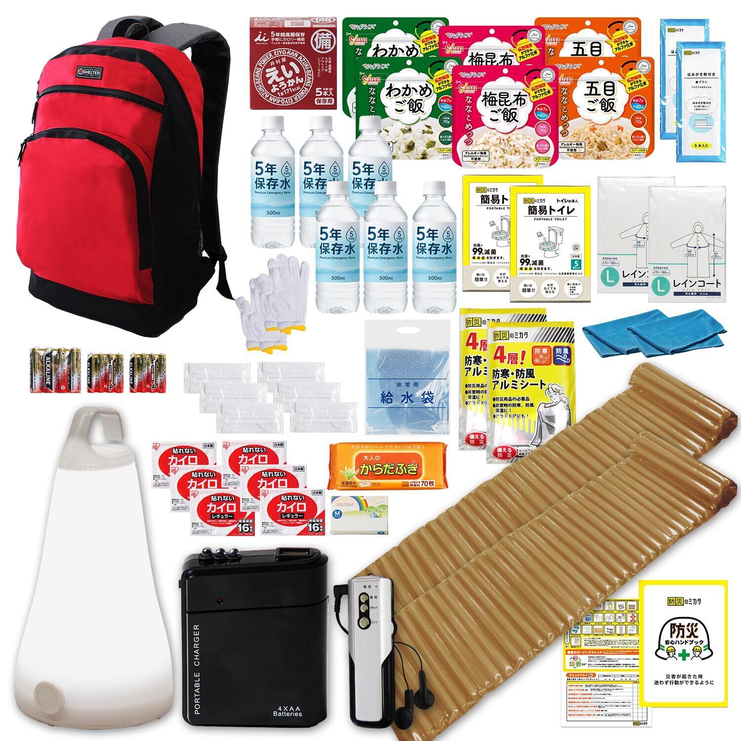 防災のミカタ 防災グッズ セット リュック 2人用 68点 赤 非常用リュック 大容量リュック 非常用 簡易 トイレ 保存食 保存水