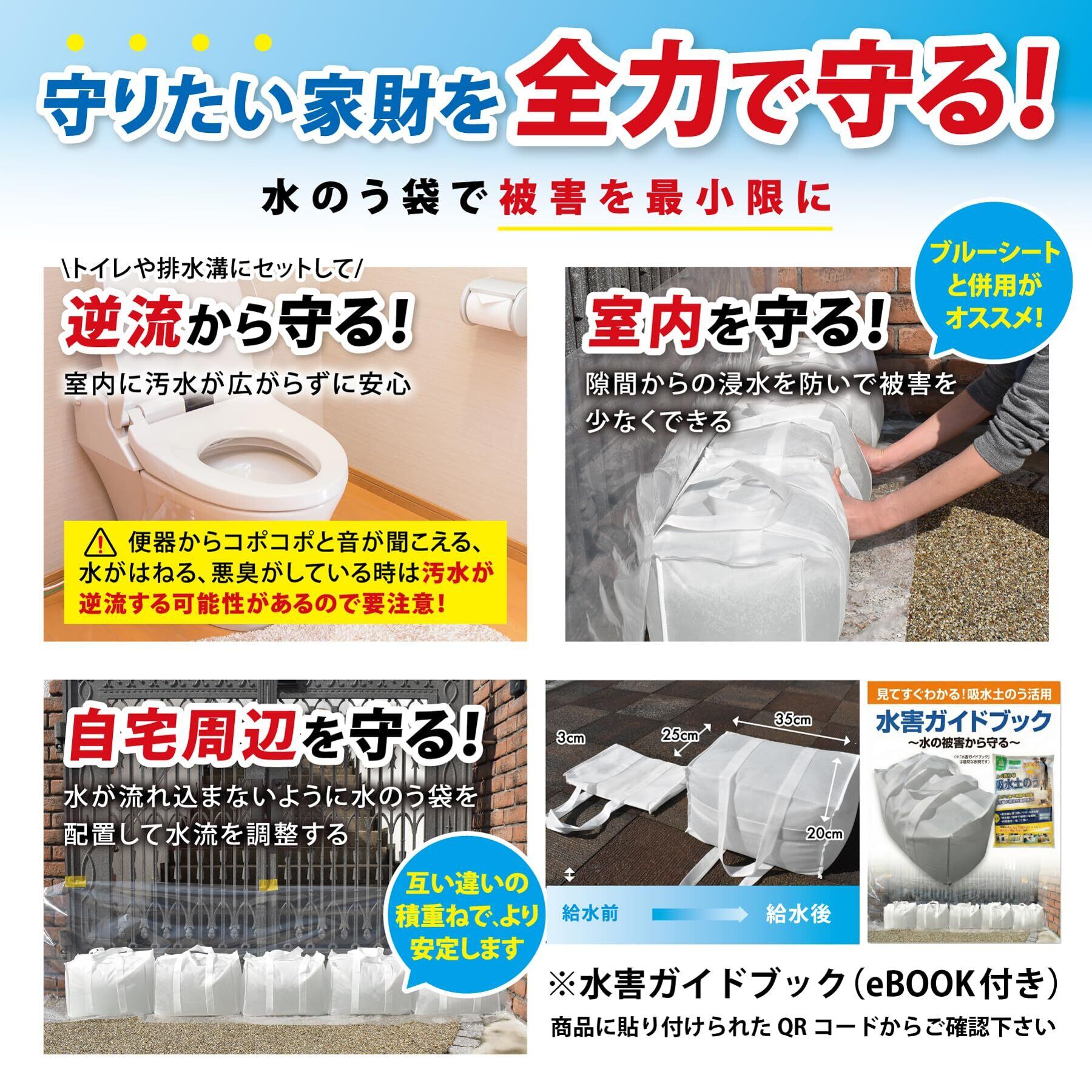 【後処理も簡単!一般ゴミで処分可能】 使用後は天日干し等で乾燥させることで、自治体の指示に従い「一般ゴミ」として処分可能です。重い泥が入った土のう袋の後処理の悩みを解決します。さらに、使い方がすぐわかる「水害ガイドブック(eBook)」のQRコード付きで、初めての方も安心です。