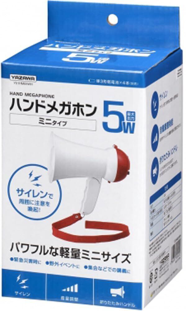 ヤザワコーポレーション YAZAWA ハンドメガホン ミニ 拡声器 折りたたみ 5W 誘導 サイレン ハンディ 到達距離約100m ホワイト Y01HM05WH