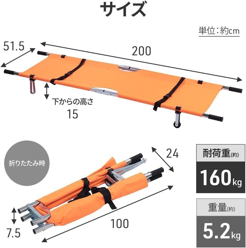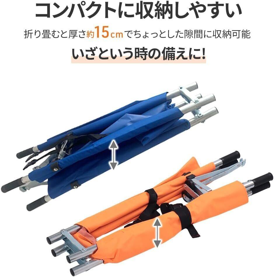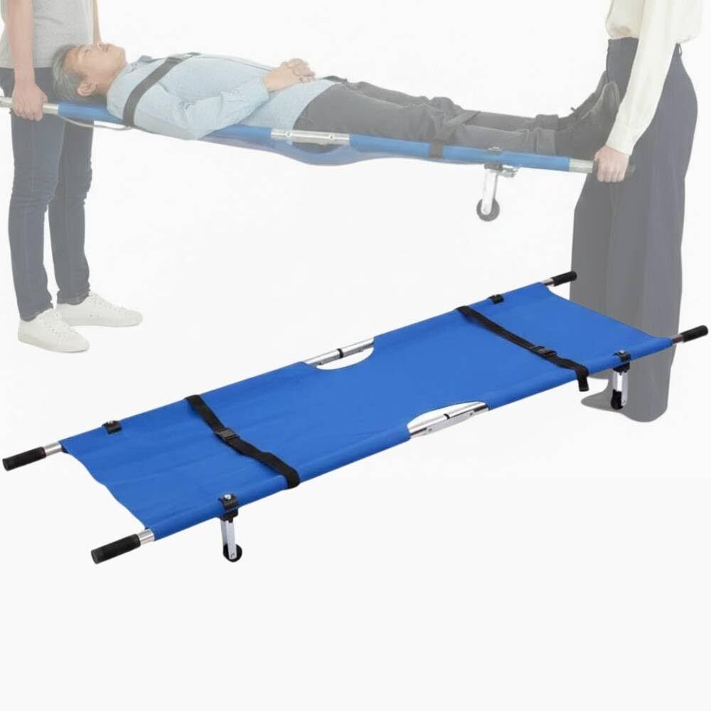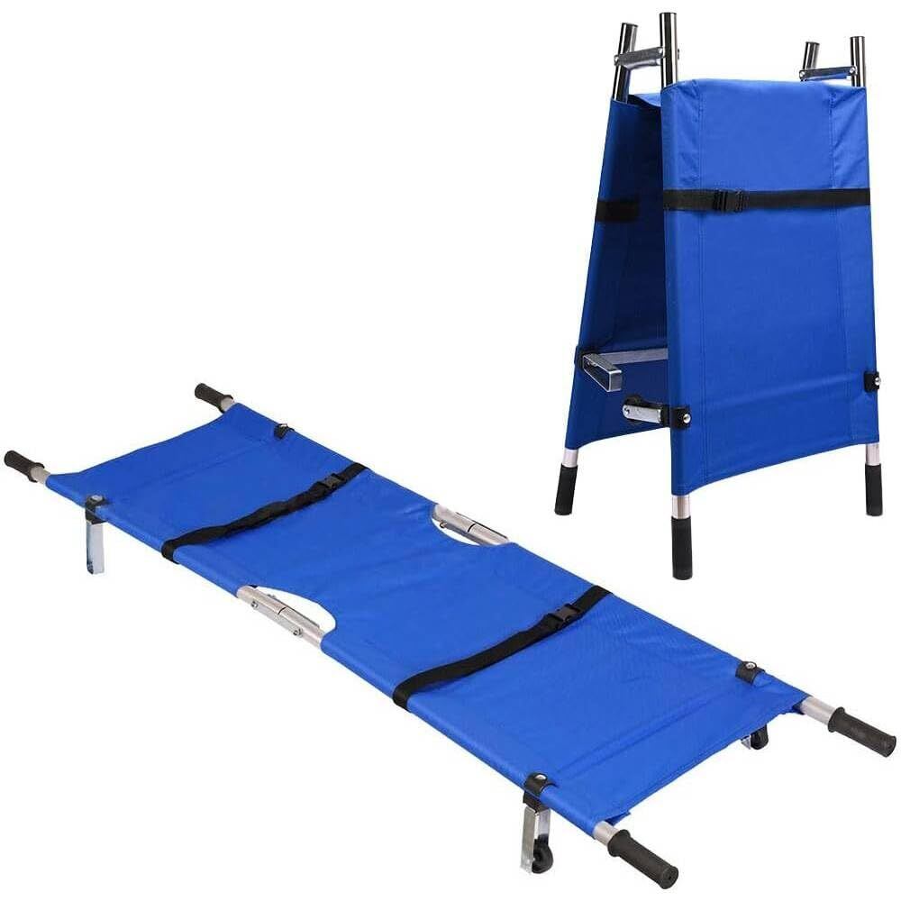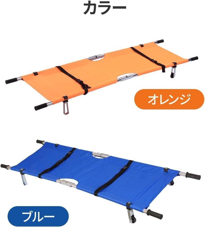 iimono117 折りたたみ式 ストレッチャー キャスター ベルト付き 2つ折り 担架 スチール製 防水 簡易担架 ロングサイズ 200cm 救護用 搬送 介護用品 緊急 非常用 (ブルー)