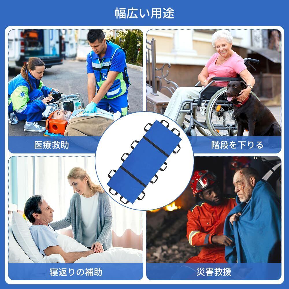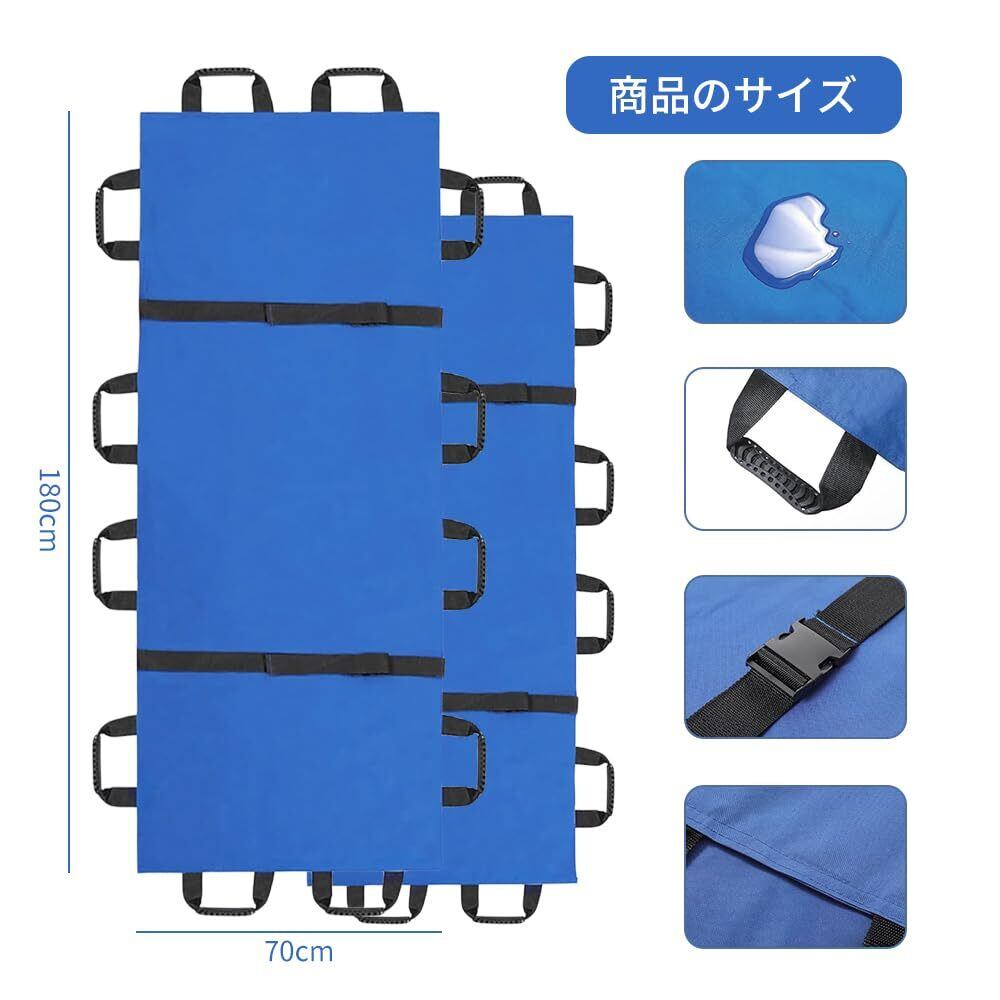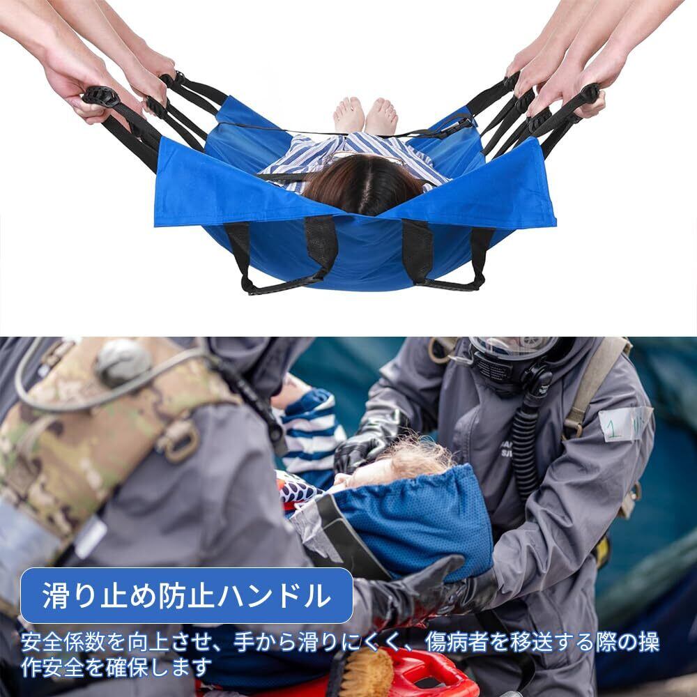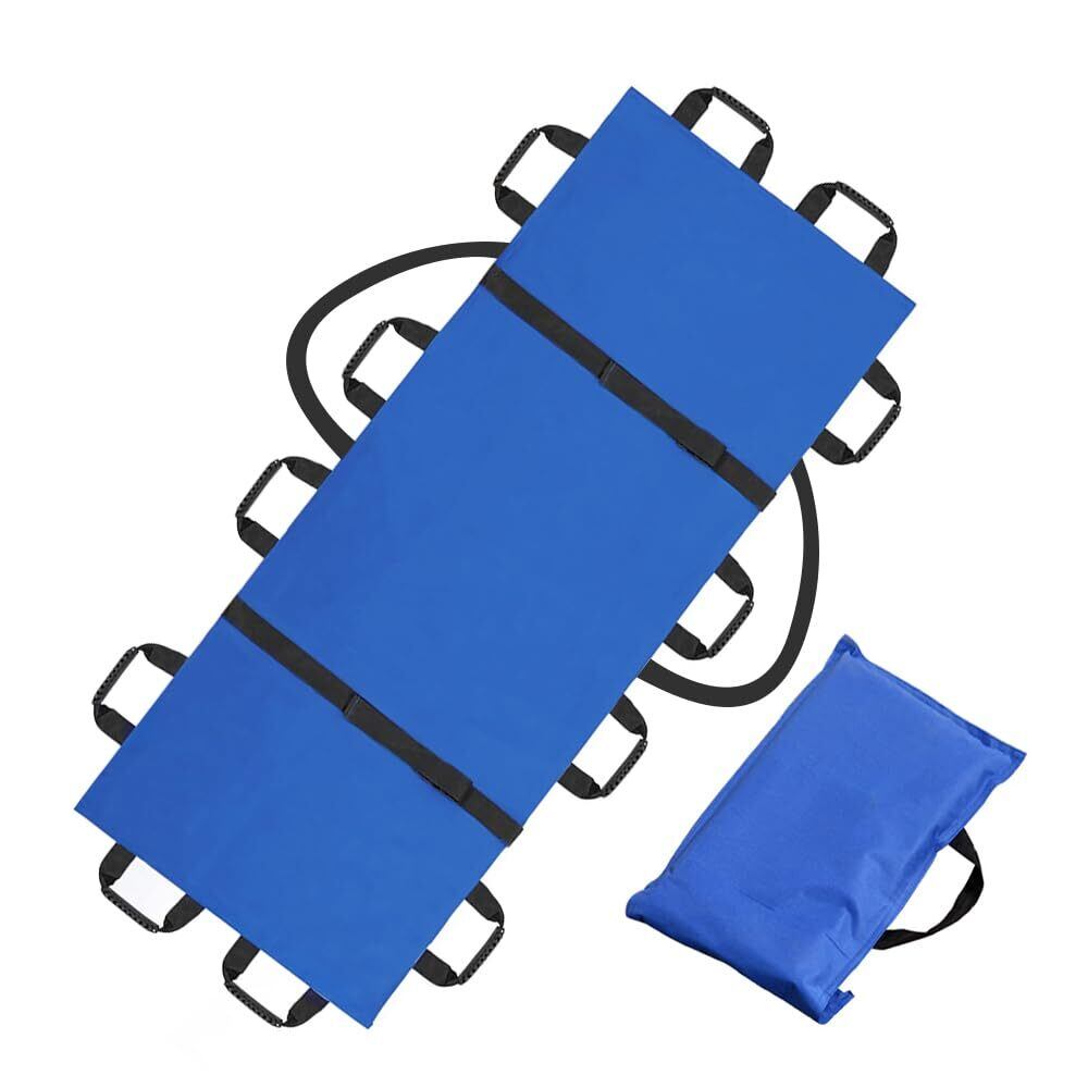 担架 マルチ担架 折りたたみ 布担架 救急 救護 防災 介護 災害 緊急 患者移動用シート 安全ベルト 収納袋付き (ブルー, 12ハンドルストラップモデル)
