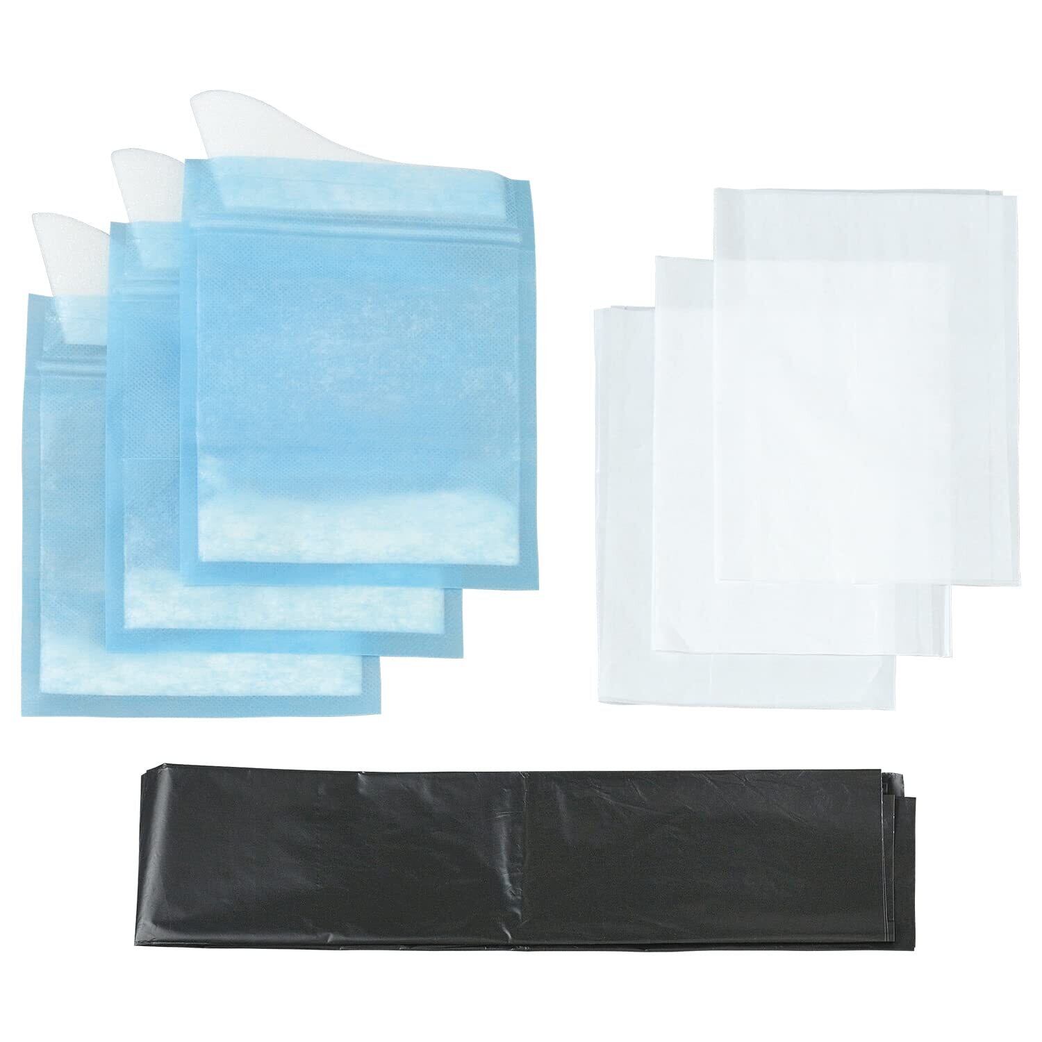 凝固剤入り尿処理袋3枚、持ち帰り袋3枚、前掛けシート1枚入り。