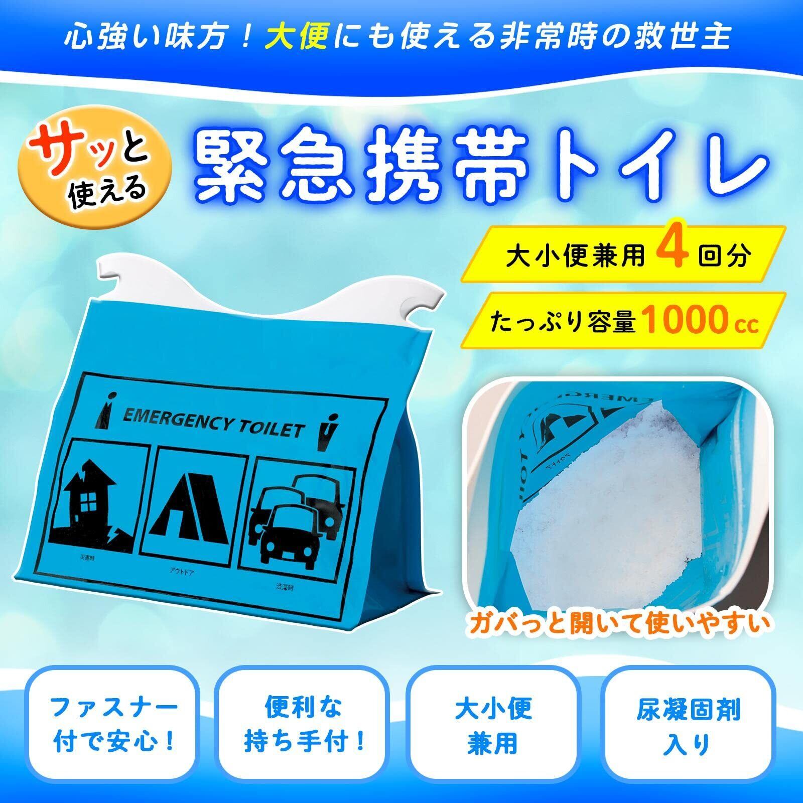 【数量限定】コモライフ サッと使える緊急携帯トイレ 大小便兼用 4回分 1000cc 携帯トイレ 簡易 防災 非常用 大容量 男女両用