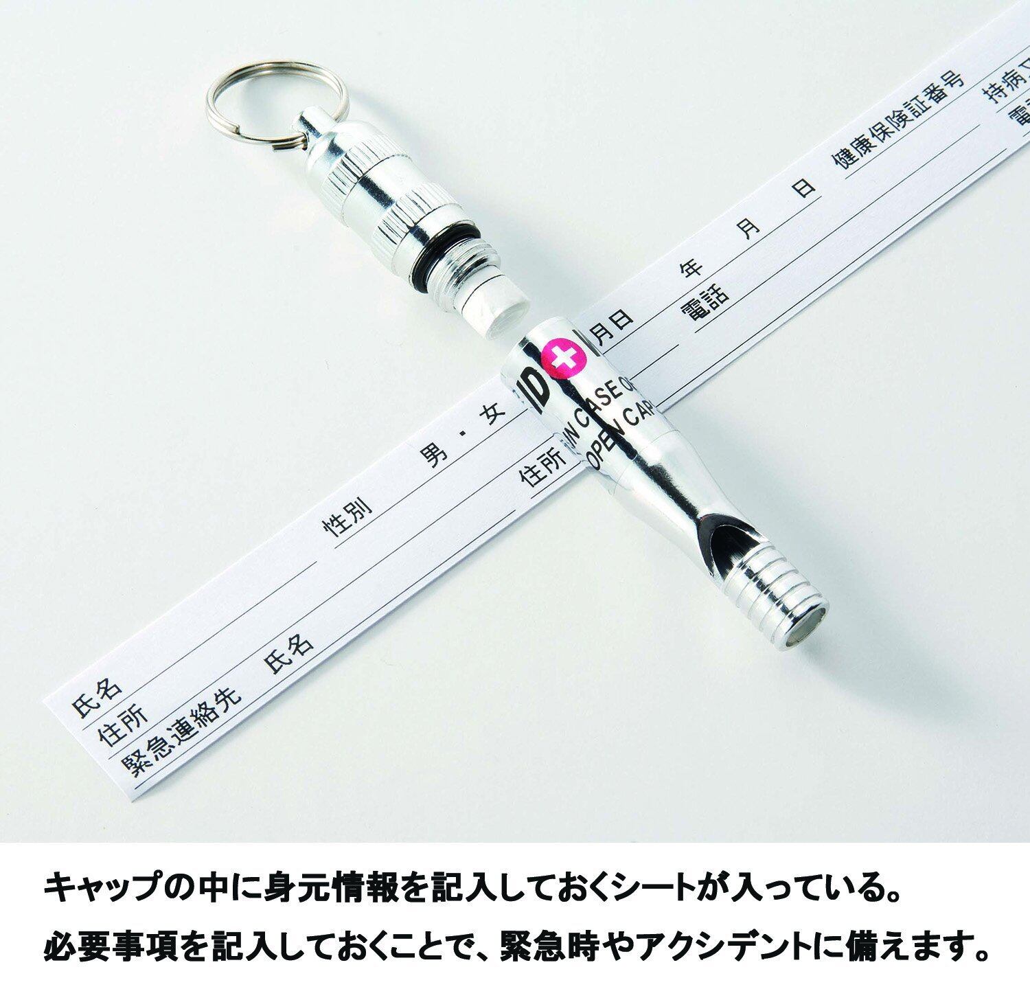 身元を知らせるIDシート付き。身元情報を記入しておき、緊急時やアクシデントに備えます。