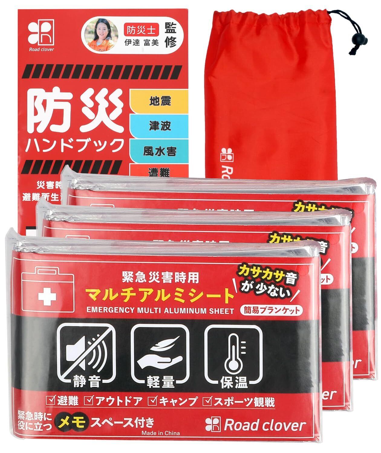 【在庫処分】サバイバルシート アルミシート 防災 グッズ カサカサ音少ない Road clover (3個)
