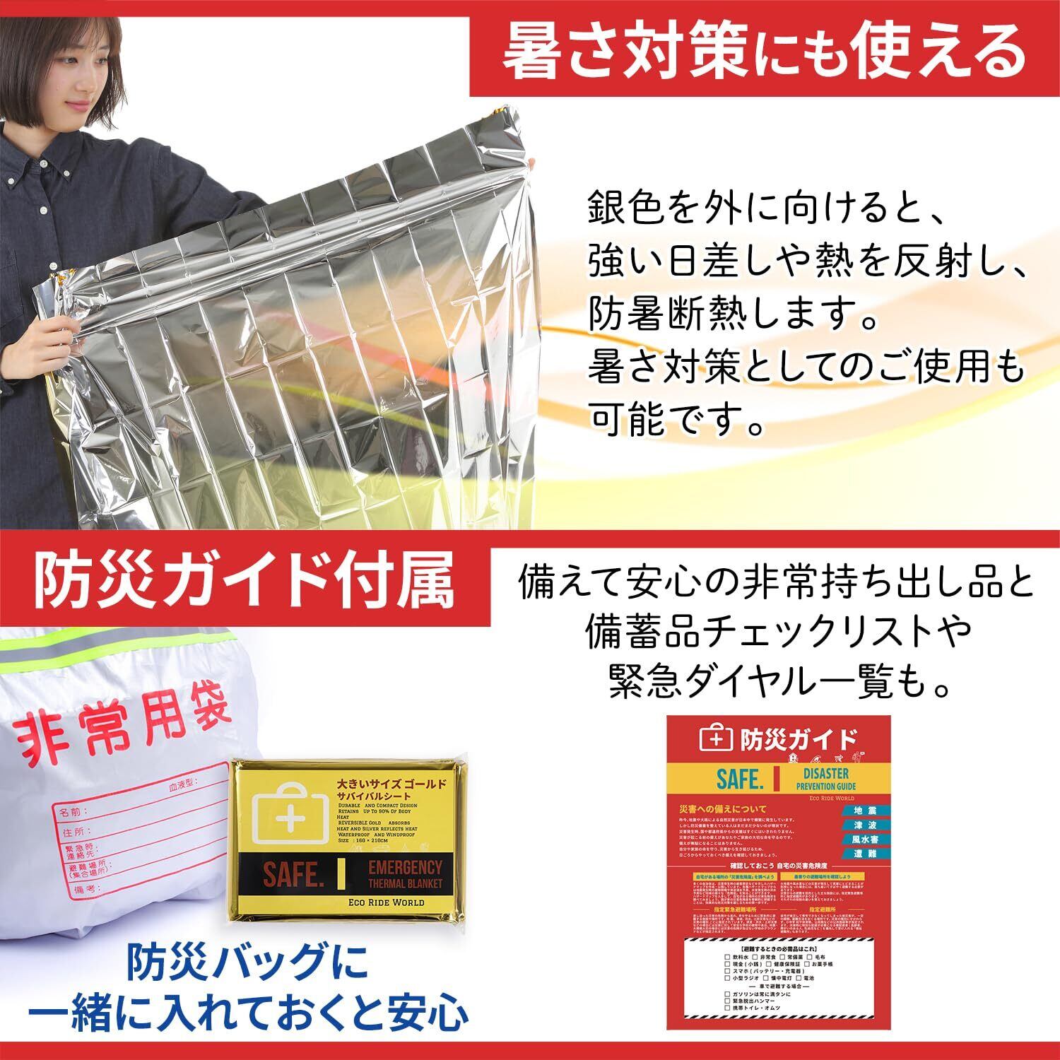 Eco Ride World アルミシート アルミブランケット 防災 サバイバルシート 備蓄 ゴールド 大きい サイズ (1) sabage-129-01