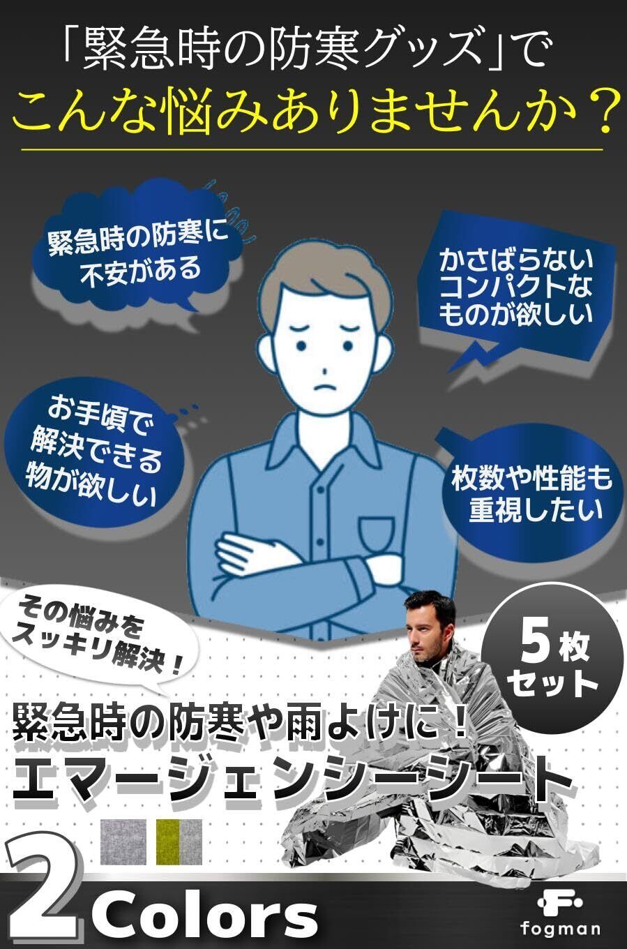 【数量限定】fogman エマージェンシーシート 防災 大判 軽量 コンパクト 160cm×210cm 5枚セット (シルバー)