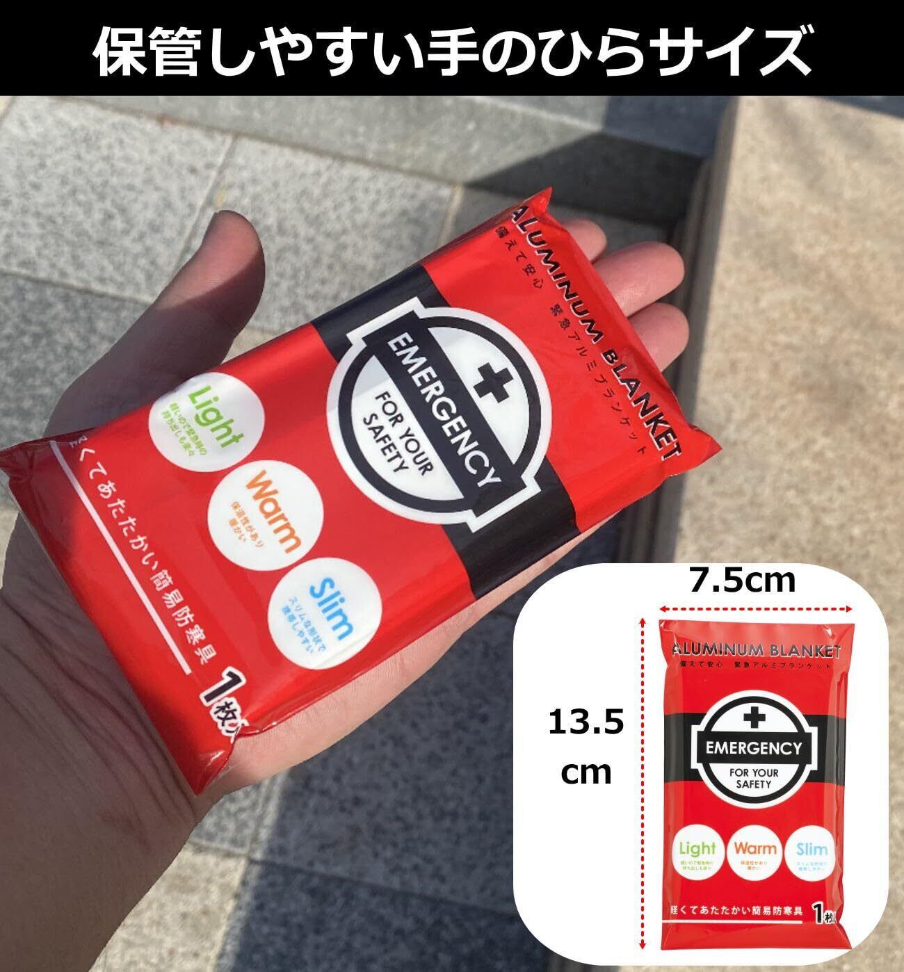 地震等の災害だけでなく、キャンプや登山等のアウトドア時の防寒対策としても。 ポケットに入るサイズなので持ち運びも楽々