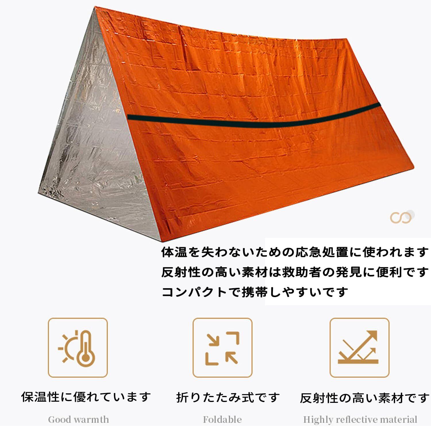 アウトドア 緊急テント エマージェンシーテント 簡易テント 軽量 防水 折りたたみ式 2人用 サバイバルレスキュー アルミブランケット キャンプ 防災 緊急用 防寒保温 オレンジ チューブテント サバイバルシェルター サバイバルテント キャンプ ハイキング