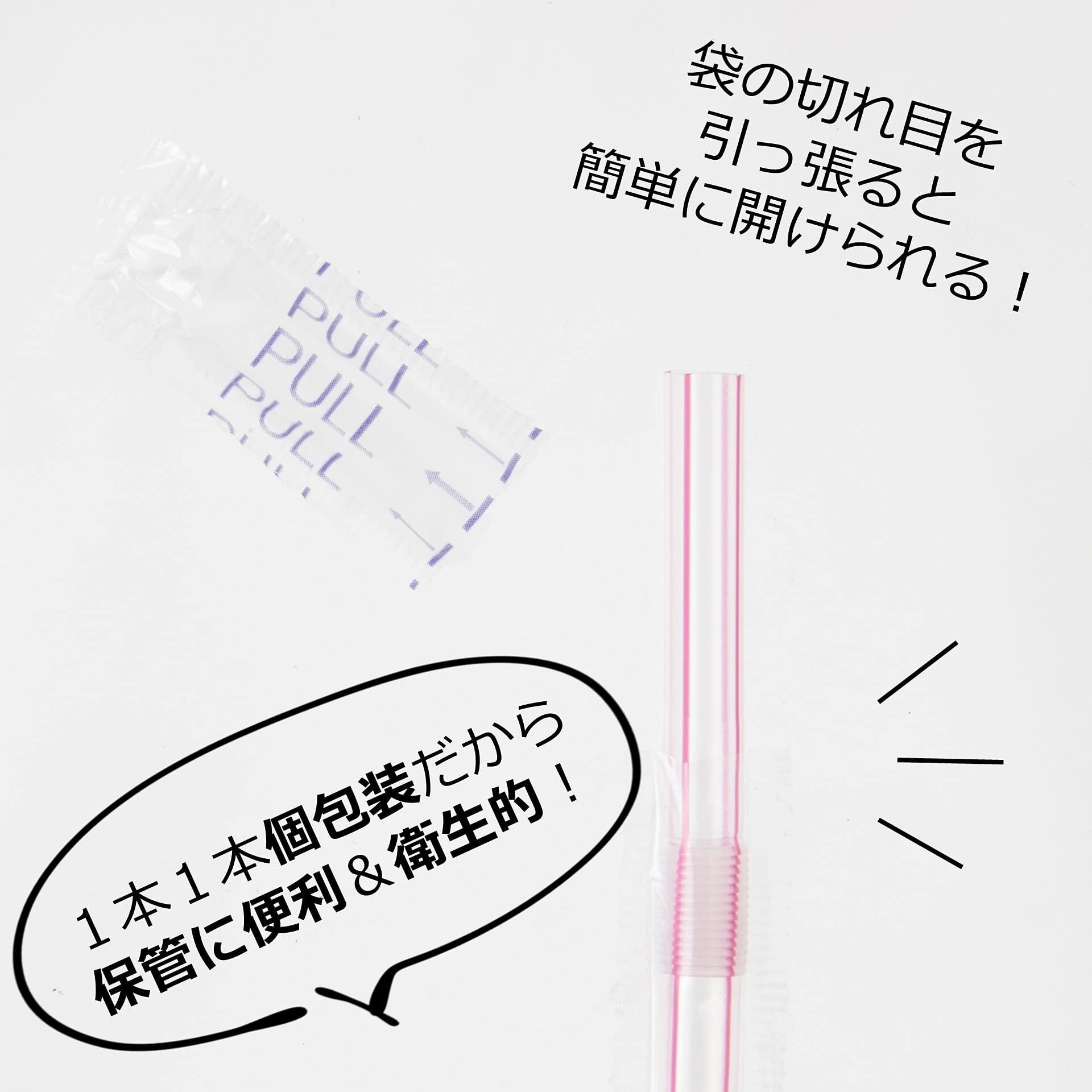 ストリックスデザイン ロング ストロー 個包装 250本 25cm 直径6mm クリアストライプ 500mlペットボトル 1L紙パック対応 長い F-591