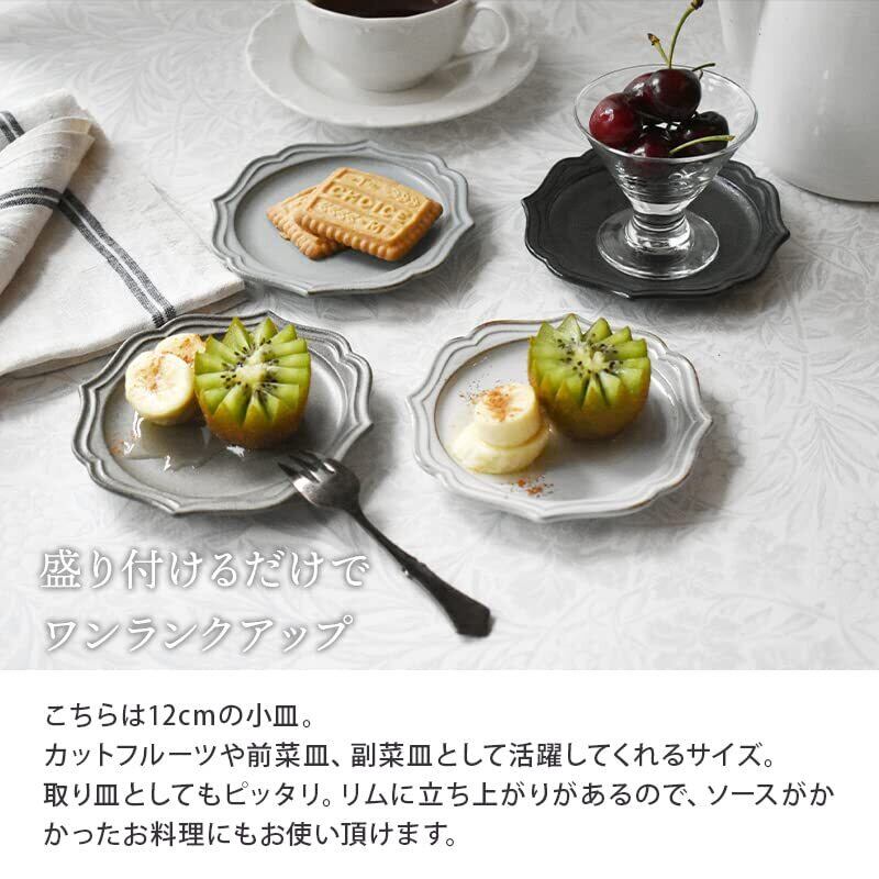 こちらは12cmの小さなお皿で、菓子皿、フルーツ皿、おつまみ皿などにぴったり。グラスの受け皿、醤油皿、たれ皿にもおすすめです。普段使いはもちろん、おもてなし食器としても最適。