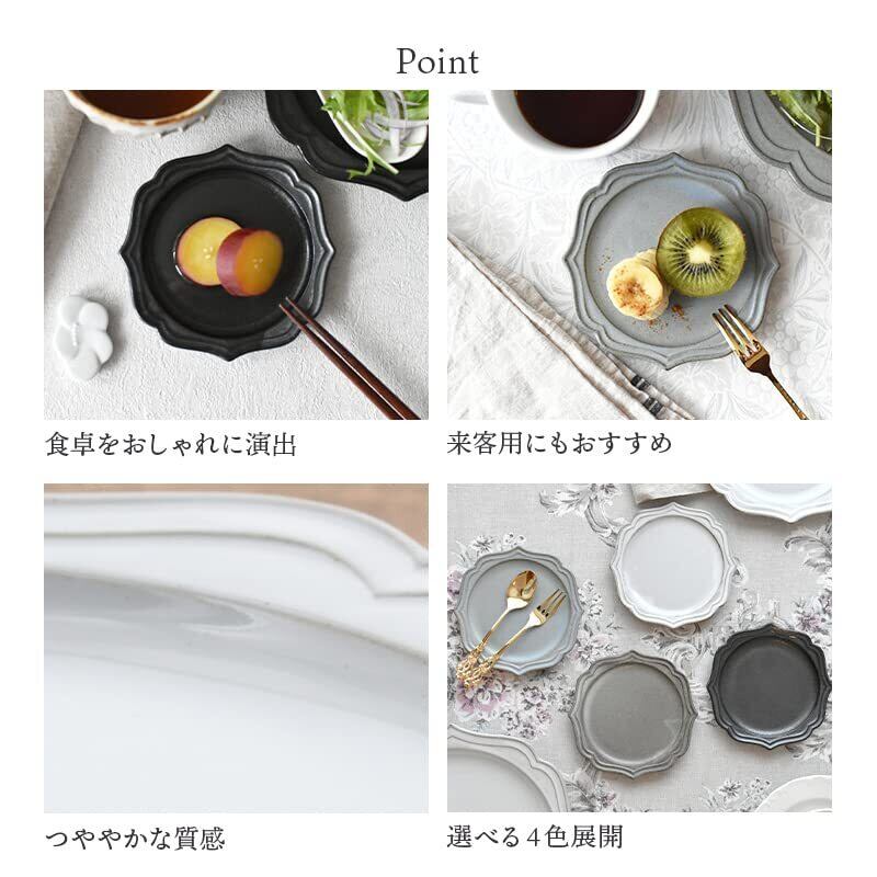 西洋の食器をイメージした丸小皿は縁の装飾が料理やテーブルを上品で高級感を演出してくれます。