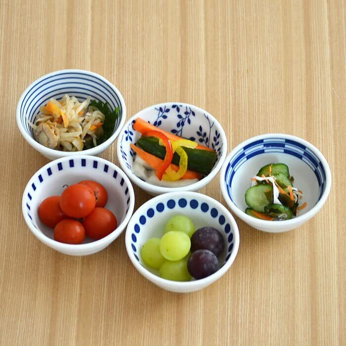 白地に瑠璃色のシンプルな柄が食卓を明るくしてくれる、小さな小鉢です。漬物・おしょうゆ皿、ソースやディップ入れに、お浸しや和え物などの副菜の盛りつけに活躍します。おつまみをちょこちょこのせて、テーブルに乗せても可愛いですよ。
