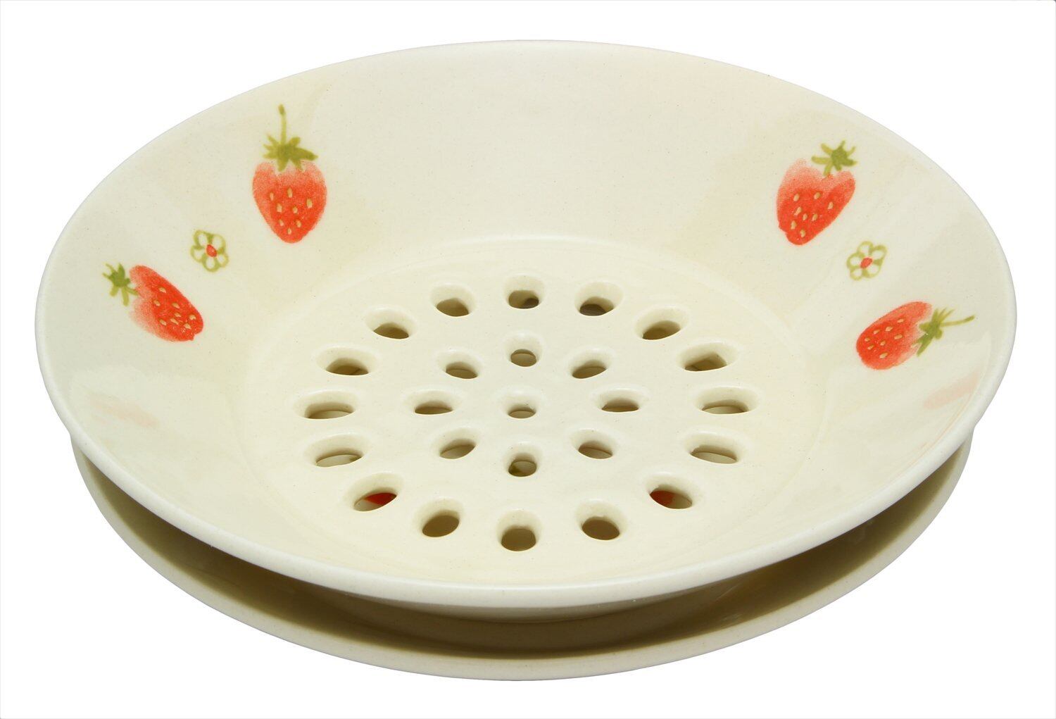 窯元SOUSEN 中皿 白 15cm 瀬戸焼 水切り皿 果物(いちご)柄