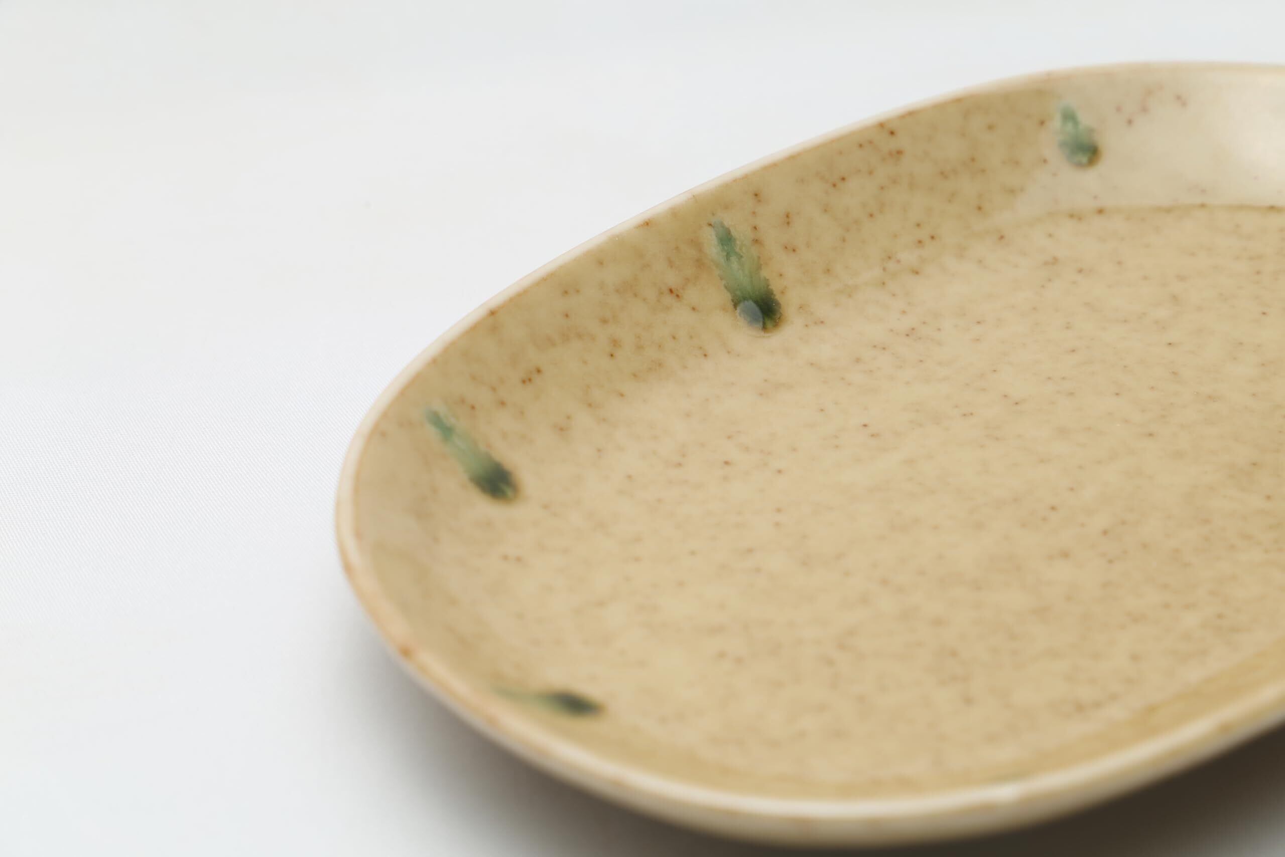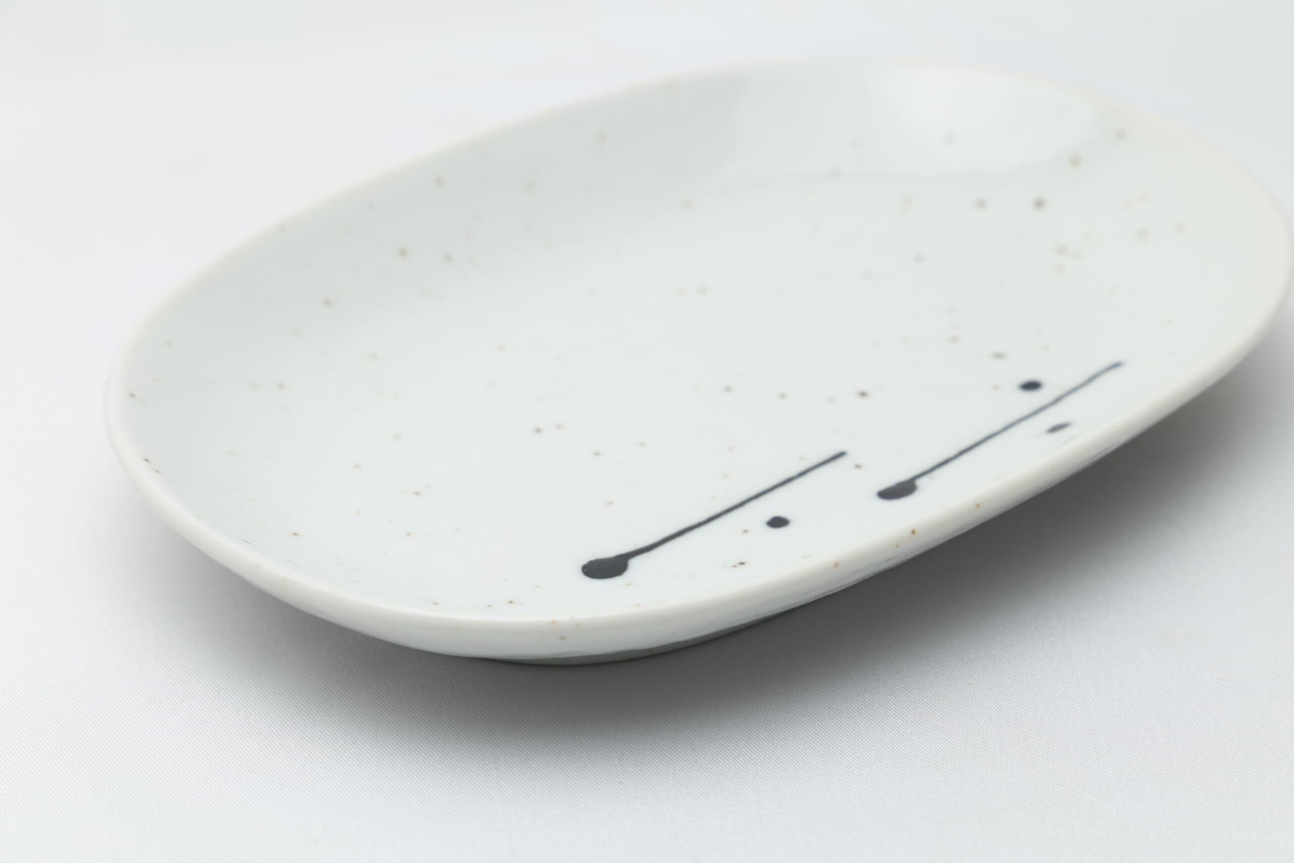 食卓で重宝するちょうどいいサイズです。重なりがいいので収納もすっきりです。少し深さがあるので汁気のある物もOKです。焼魚・おにぎり・卵焼き等、多用途に使えます。窯変焼成の為、色合い・風合い等多少異なる場合があります。表面の黒点は鉄釉使用の為の物で、この商品の特徴です。楕円皿以外は商品ではありません。