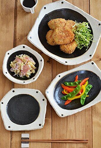 ざっくりとした造りながら温かく表情があり、味わい深い雰囲気。 盛り付け部分の黒が食材の色を引き立て、なお食卓も引き締めます。