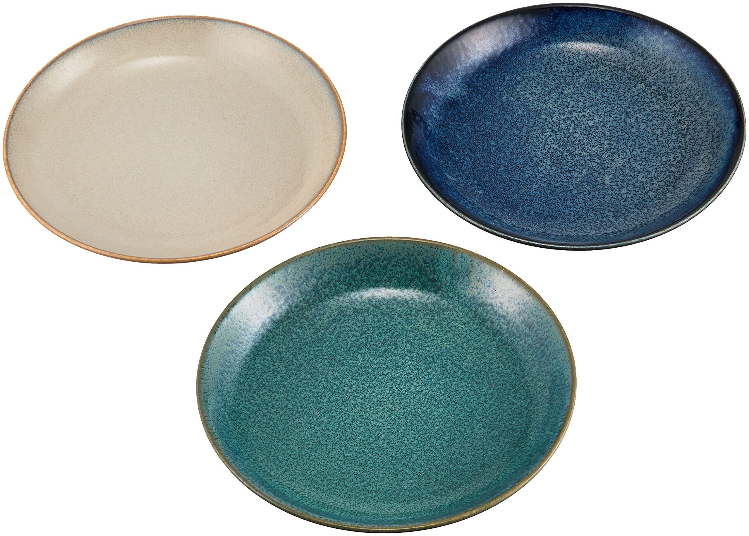 幻想的な自然をイメージした器です。取り皿・一品皿・ケーキ皿など幅広く使えるちょうどいいサイズです。スタッキング収納できます。料理が映える3色の組み合わせです。製造工程上及び釉薬の特性上、釉薬のムラや縁にザラつきが生じる場合がありますがこの商品の特徴であり・風合いの一つです。※プレート以外は商品ではありません。