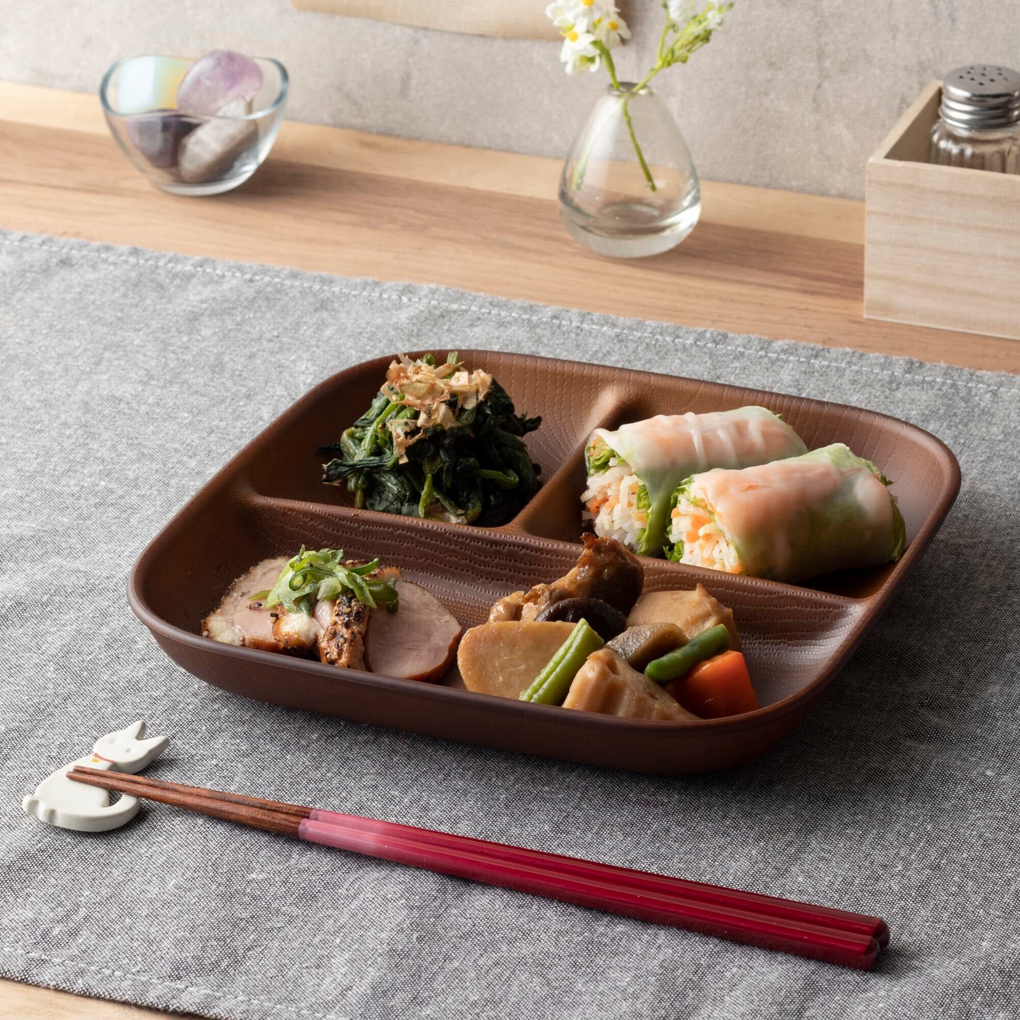 【2022最新】正和 Showa NH home 仕切り皿 木目 樹脂 スクエア ワンプレート L ブラウン クリーンコート 電子レンジ・食洗器対応 日本製 軽い 割れにくい 食器 アウトドア 4979492