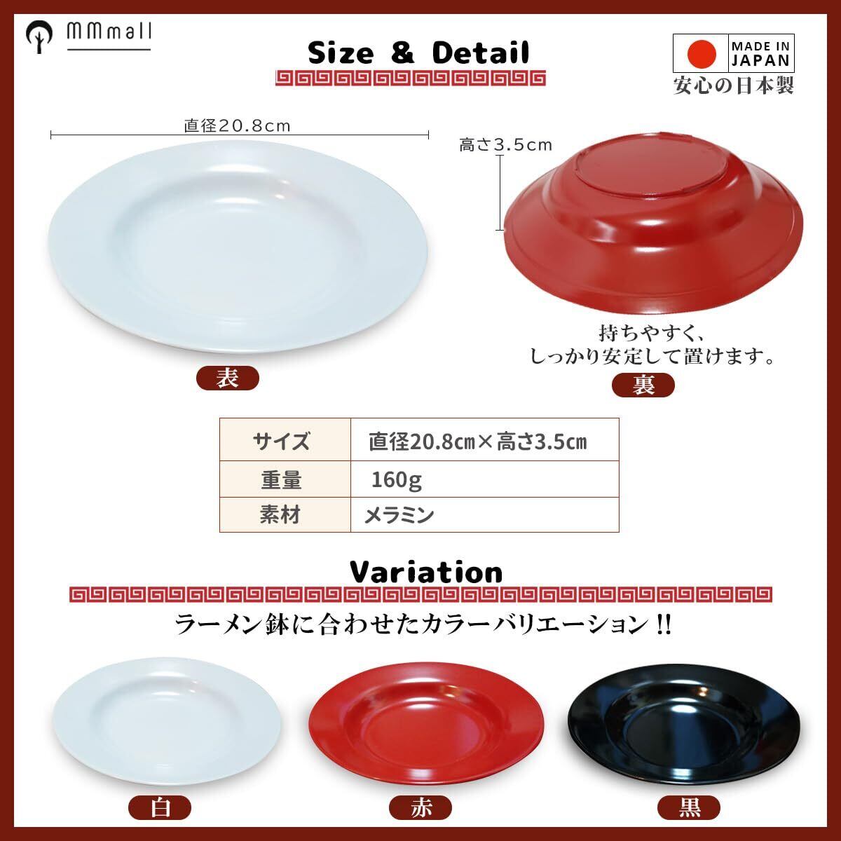 【数量限定】MMmall ラーメン 受け皿 受皿 下皿 スープ皿 メラミン 20.5cm 5枚セット (赤, 下皿)