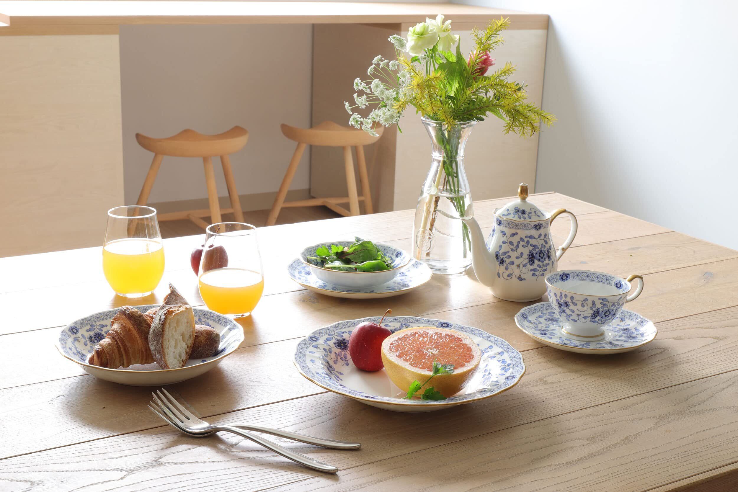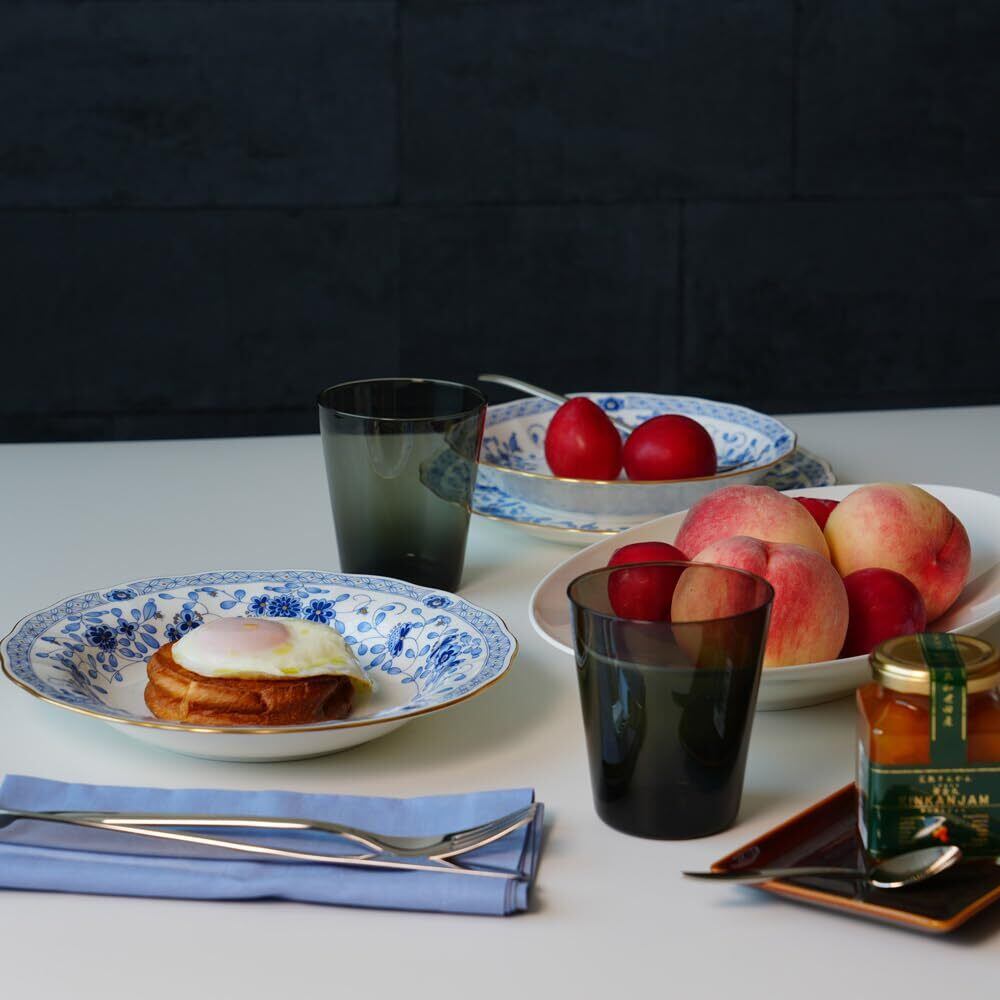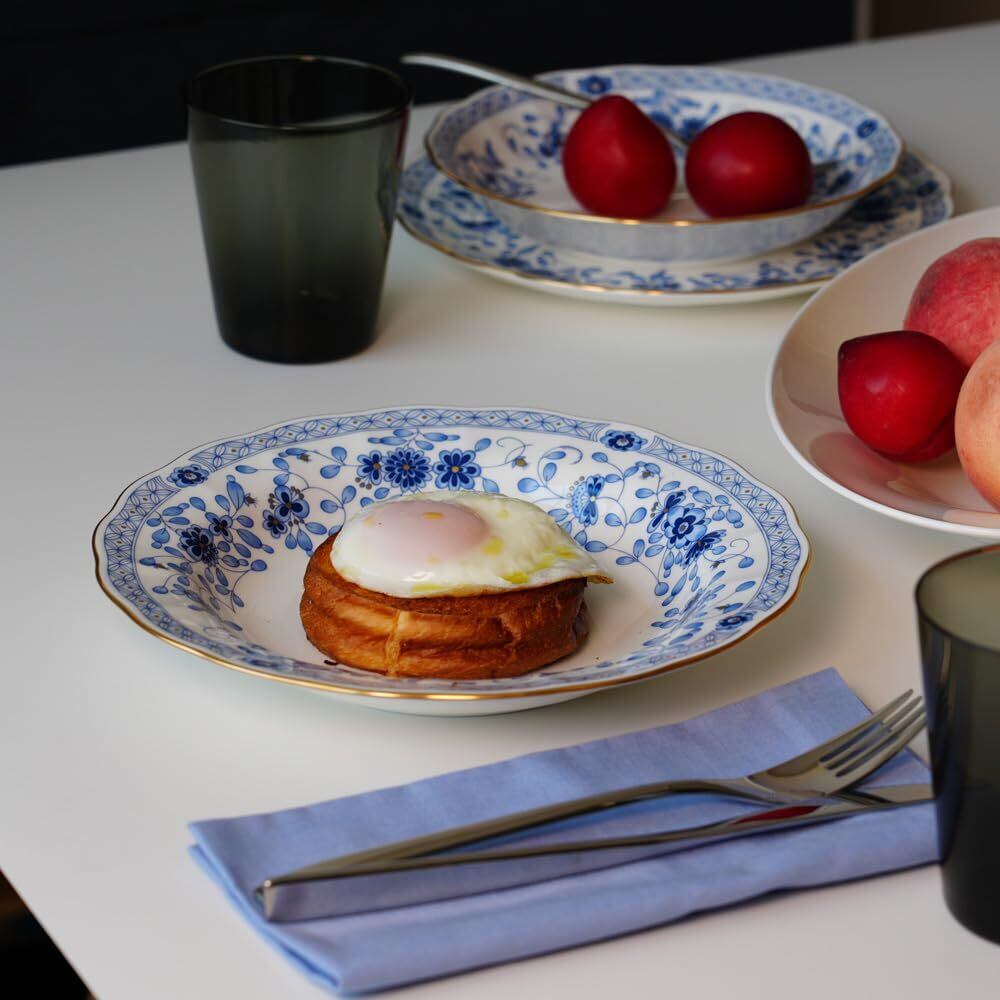 縁起の良い花として古くから親しまれてきた梅の花を、藍色の濃淡で表現した「ミラノ」は気品と豪華さを兼ね備えた日本の洋食器の定番商品です。 ディナーからティーまで豪華な一時を演出します。1972年からのロングセラーで、多くの人に親しまれ続けるナルミの代表作です。