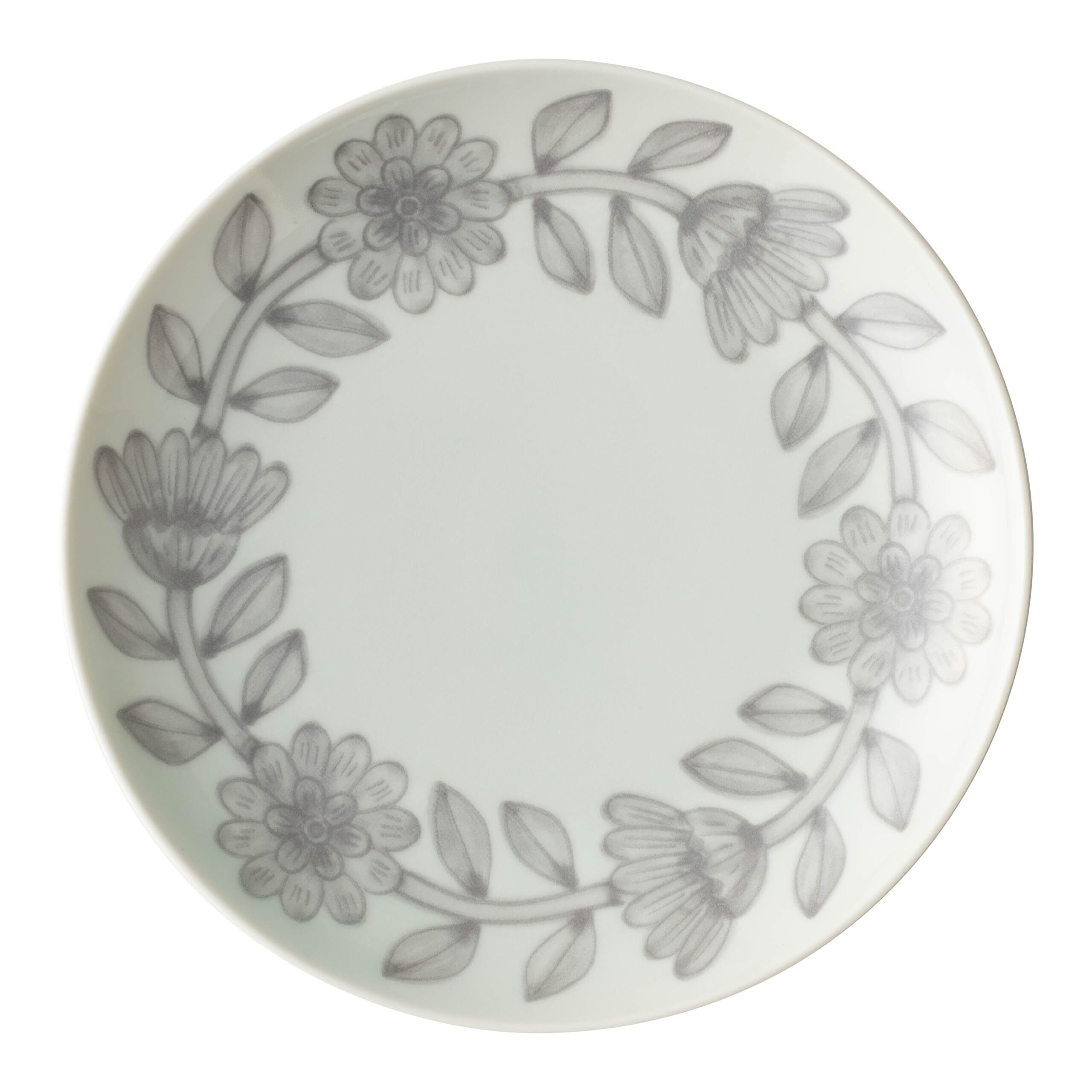 NISHIYAMA デイジー プレート 平皿 (グレー / 18cm / 1個 / 花柄) 波佐見焼 日本製 (電子レンジ対応/食洗機対応) ケーキ皿 取り皿