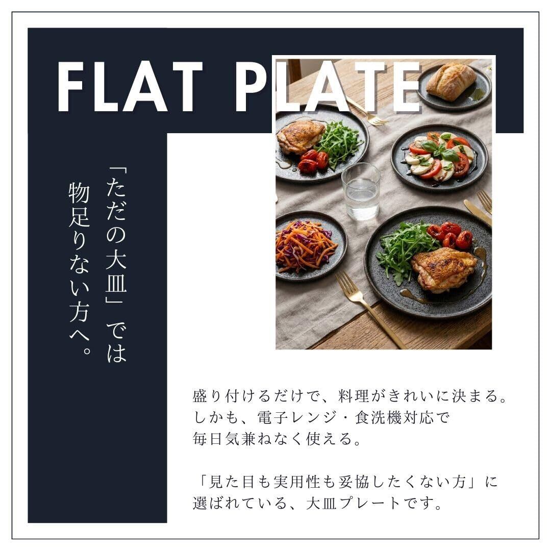 【シンプルで飽きのこないデザイン】クリスタルマットブラックの色合いとシンプルな形状が特徴のフラットプレートです。食材を美味しく魅せるために作られているのでお料理を最大限に引き立てます。パスタやハンバーグ、カルパッチョやケーキまで、様々な料理を盛り付けることが可能です。普段の食事からおもてなしまで幅広く活躍します。