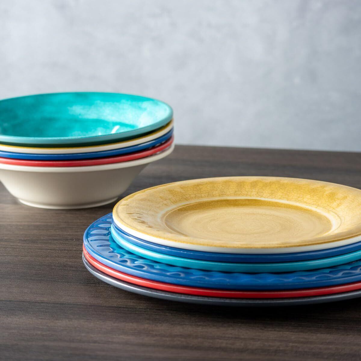 【クラックルシリーズ】クラックルとは、割れたような独特の模様が特徴の食器シリーズです。表面には小さなヒビ模様があり、陶器のような風合いや質感が楽しめます。モダンでありながら、アンティーク調の雰囲気も感じられるシリーズです。カラーバリエーションも豊富で、おしゃれなテーブルコーディネートにぴったりです。