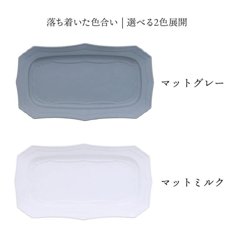 こちらはEAST table(イーストテーブル)(旧:テーブルウェアイースト)のオリジナル商品です。 商品説明 アンティーク風で上品なデザインの角皿はいつもの食事も華やかに演出してくれます。こちらは長角皿で形を活かして副菜やデザートを並べて盛りつけるのもおすすめ。焼物皿にもぴったり。おもてなし食器、普段使いにも使えるプレートです。 商品詳細 サイズ/22.6×12.6×高さ2.3cm(商品により誤差があります) 重さ/約269g(商品により誤差があります) 素材/磁器 質感/マット 生産地/日本(美濃焼) ※サイズは全て外寸になります。電子レンジ・食洗機可 オーブン・直火不可 ご注意 ※色むらがある場合がございます。※ピンホール(針で突いたような小さな穴)が見られる場合がございます。※鉄粉(茶色い点・黒い点)が見られます。※釉薬の垂れが見られる場合がございます。※グレーは入荷毎に色味・質感が異なる場合がございます。※お客様のお使いのモニター設定、お部屋の照明等により実際の商品と色味が異なって見える場合がございます。※画像に含まれる小物は使用イメージのために使用しています。※不明な点がございましたら、お気軽にお問い合わせ下さい。