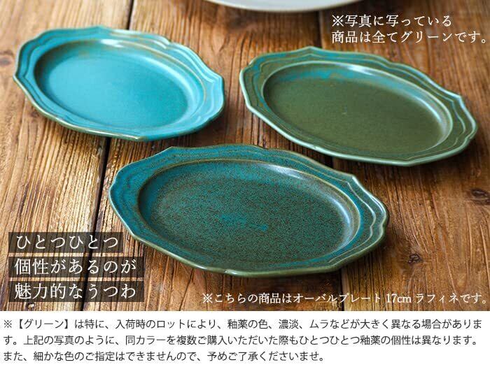 テーブルウェアイースト(イーストテーブル) オーバルプレート 17cm ラフィネ グリーン.ic-035-04.日本製.食洗機対応.電子レンジ対応.パーティ用.マット磁器.楕円形.プレート